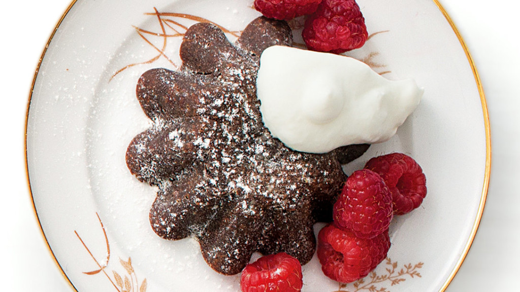 4. When you’re ready to bake, heat the oven to 450. Put the molds on a rimmed baking sheet and bake until the cakes have puffed up a bit, the tops are barely set and the cakes still jiggle slightly when shaken, 7 to 9 minutes (better underbaked than overbaked). Let sit for 1 minute.