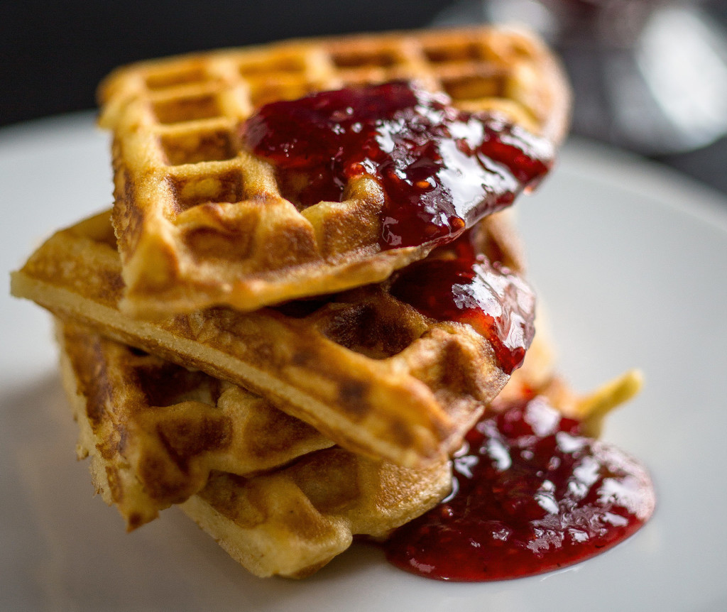 Yeast-risen waffles have a lovely, complex tang that works beautifully with whatever sweet topping you apply – honey, maple syrup, fruit jam. You can make the batter the night before and let it rise in the refrigerator until breakfast time. Or, it will rise at room temperature in a couple or hours, which makes these waffles a good choice for brunch. Like all waffles, these freeze well. Once they cool, pack them in a heavy-duty freezer bag and store in the freezer. Then pop them, still frozen, in a toaster to reheat. Toasted waffles are even crisper than freshly made ones, and make a quick and convenient weekday breakfast.
