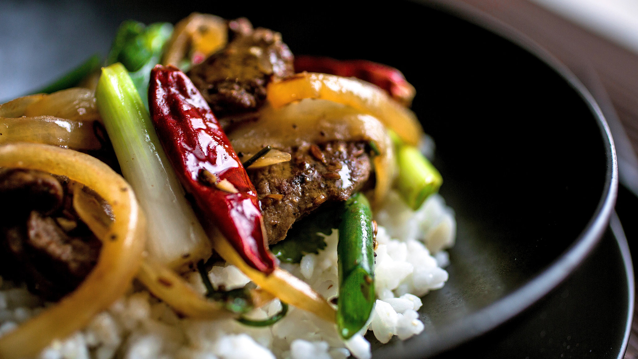 Fragrant, intense and full of fiery chile, this lamb stir-fry isn’t for the timid eater. For the most authentic flavor, it’s worth your while to seek out Sichuan peppercorns, which have a woodsy, tongue-numbing, camphor quality. (They are available at specialty spice markets, in Chinatown, or online.) You can substitute regular black peppercorns, but you won’t get the same punch. If you’re not a lamb-lover, you can also try this with lean beef. Serve this over white or brown rice to cut the heat, with a side of sliced cucumbers dressed with sesame oil and salt for freshness.