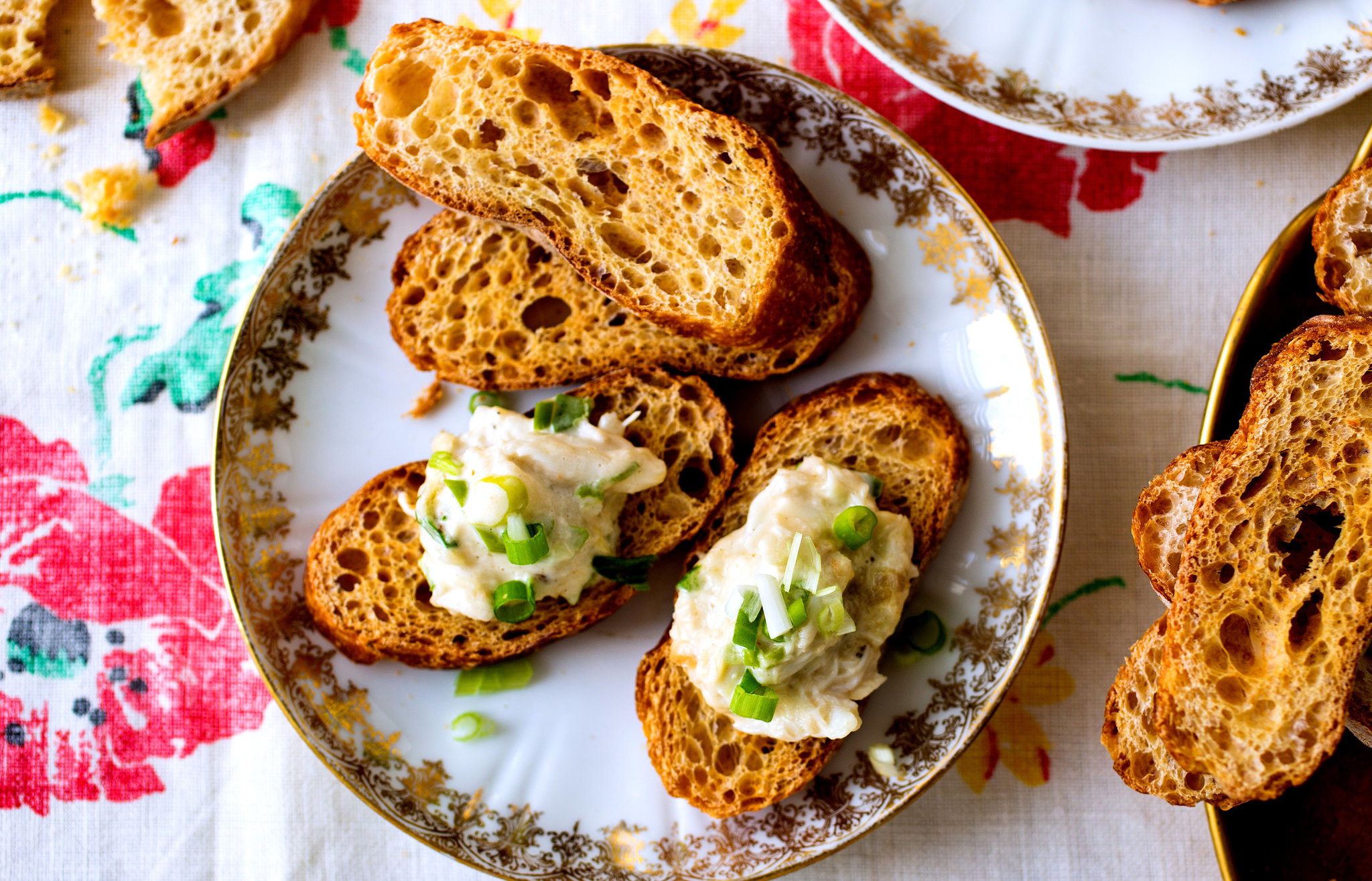 This fairly traditional hot crab dip, rich with mayonnaise, Monterey Jack and plenty of hot sauce, has one major difference: the addition of chopped oysters, which add a saline note to all the creaminess. You can mix the ingredients together a day ahead and store it in the refrigerator. But be sure to bake it just before serving. You want the cheese hot, melted and very gooey.