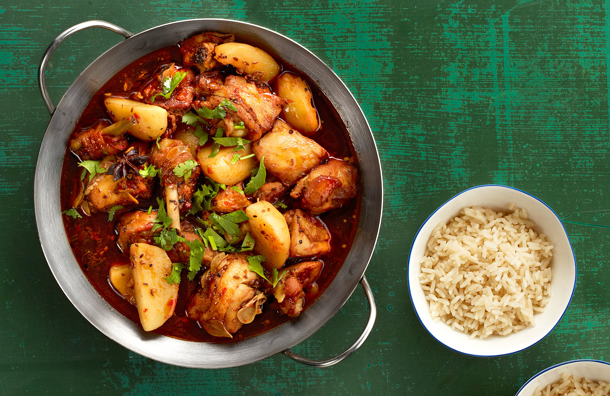 - Ladle the chicken, potatoes and broth into bowls. Garnish with cilantro and serve with noodles or rice.