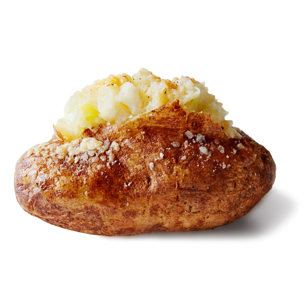 - When the potatoes are done, remove them from the oven, slice them open down the middle and use a spoon to scrape out their flesh into a bowl. Add the butter, the cauliflower and a healthy splash of the milk, and mash to combine. Spoon the mixture back into the empty jackets, place on a baking sheet and shower with cheese. Return to the oven for approximately 15 minutes, until the cheese is melted and golden.