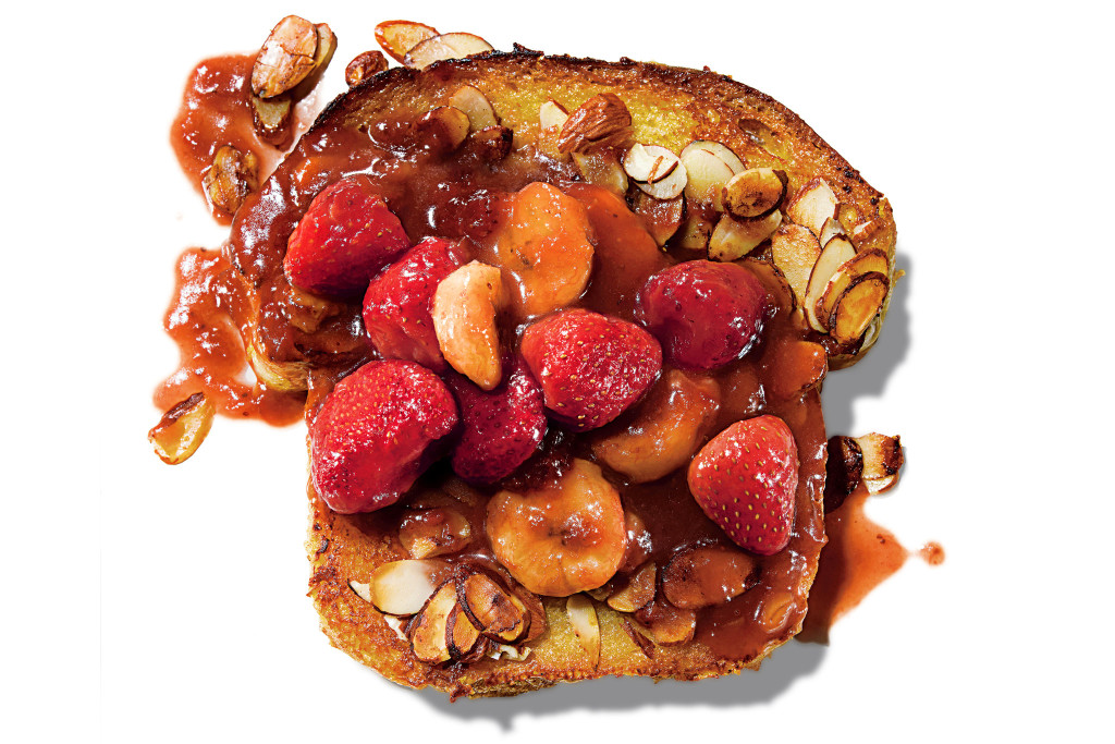 One of my daughters came up with this recipe on the morning after we worked together on a dinner of weakfish amandine, the fillets sautéed in brown butter and scattered with almonds. She asked: “Couldn’t we do something similar with French toast? And make it, like, sweet?” We certainly could, and we did: a simple breakfast fry-up made elegant and well groomed. Fry the slices up in good butter, and serve them with maple syrup or a slash of jam. Pile everything in the sink afterward and boogie; you can clean up later. Breakfast in America.