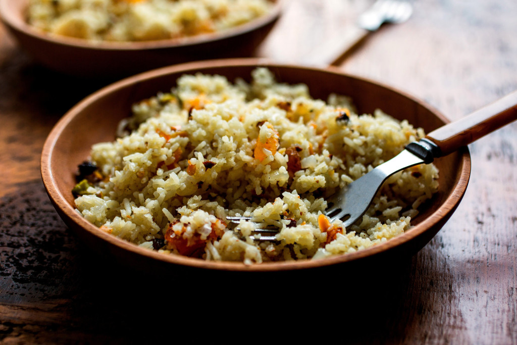 - Advance preparation: The pilaf can be cooked ahead and reheated. After the 10- minute rest with the towel over the pan, spread in a lightly oiled 2-quart baking dish and allow to cool completely, uncovered. To reheat, cover with foil and place in a 325-degree oven for 20 minutes.