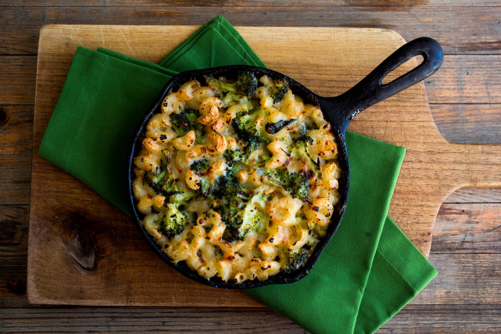 This is a macaroni and cheese that’s not too heavy and benefits mightily from the use of whole-wheat pasta and the addition of broccoli. You can assemble it ahead and bake it when you need it, or bake it ahead and reheat. There are a number of excellent whole wheat macaroni products on the market now. Check out Community Grains and MagNoodles. When you cook the macaroni, be sure to cook it for less time than usual so that it is more al dente; otherwise it will become too soft and may fall apart when you bake it in the final casserole.