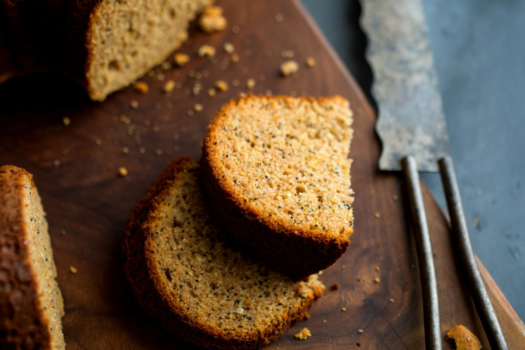 Because this is made with whole wheat flour and honey it doesn’t look like most white fluffy poppy seed cakes; it’s dark and golden, with a wonderful moist texture plus the slight crunch of the poppy seeds (which are another good luck food, at least in Poland). The formula is much the same as the one I used for my walnut apricot Bundt cake modeled on Peter Reinhart’s formulas for quick breads and muffins, with ricotta standing in for some of the buttermilk.