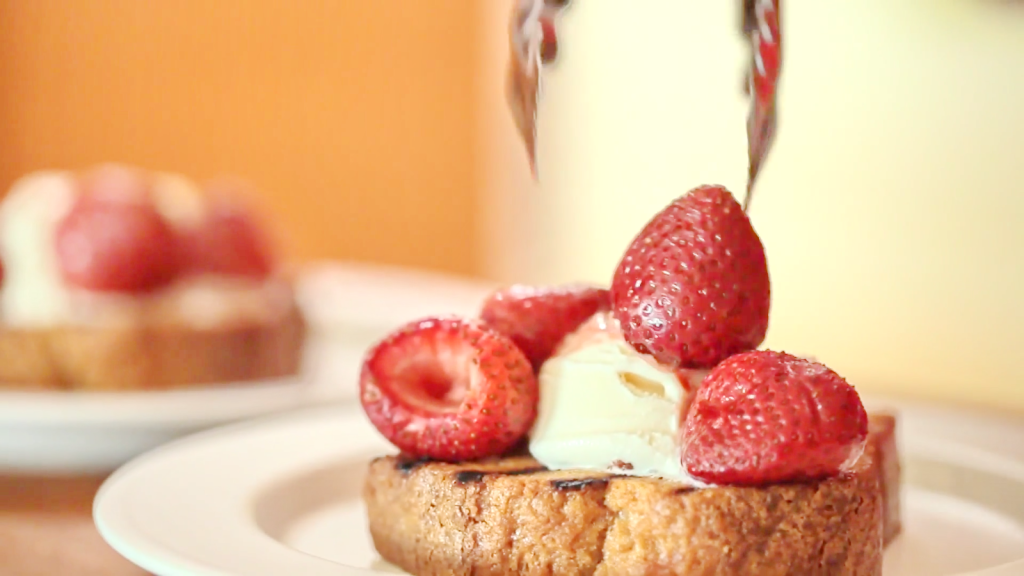 Summertime strawberries are so amazing on their own, but this dessert takes them to a completely decadent level. Lightly toasting store-bought pound cake on a grill pan (or in a skillet) with these delicious berries is a great time-saving way to make an impressive & indulgent dessert in minutes.