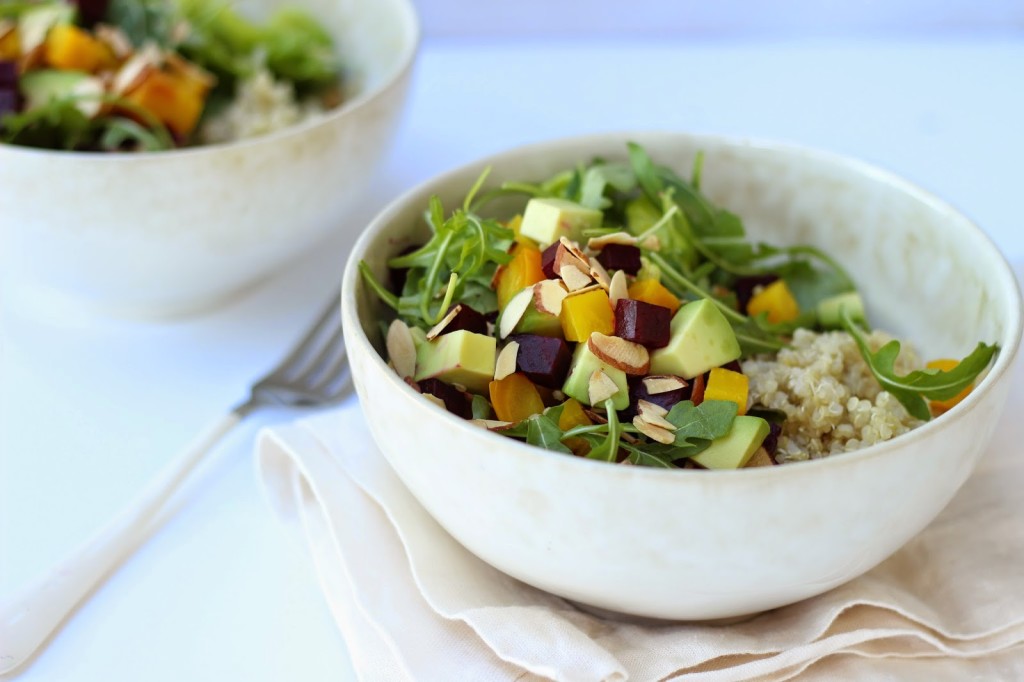 So here you have it…your vegetarian, dairy-free, whole grain, plant protein-infused, veggie-packed, seasonally-appropriate bowl of wholesome goodness. The great thing about this recipe is that it’s so delicious & satisfying (the beet-avocado combo is beyond) that you will want to eat this way all year round!