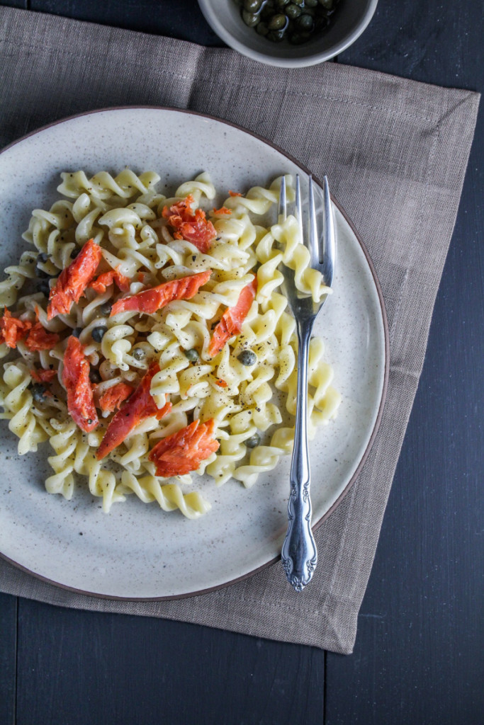 I took my three ingredients – smoked salmon, creme fraiche, and capers – and decided that I should make two of the three from scratch, defeating the simplicity point a little bit. Creme fraiche is super easy to make at home – all you need to do is add a few tablespoons of buttermilk to a cup of heavy cream, stir it up, cover it, and let it sit on the counter until thick, usually about 24 hours. Smoking your own salmon takes a bit more effort, but it’s a fun project and totally doable. Stoking and tending the fire and keeping the temperature just right as the fish smoked, so I can’t take too much credit here, but the end result was really delicious. The pasta gets well coated with the tangy creme fraiche, the salmon is incredibly rich and slightly sweet from a maple syrup brine, and the capers add some much-needed piquancy. Even with all store-bought ingredients, this recipe is a winner for summer nights. Head over to get the full recipe on Cup of Jo.