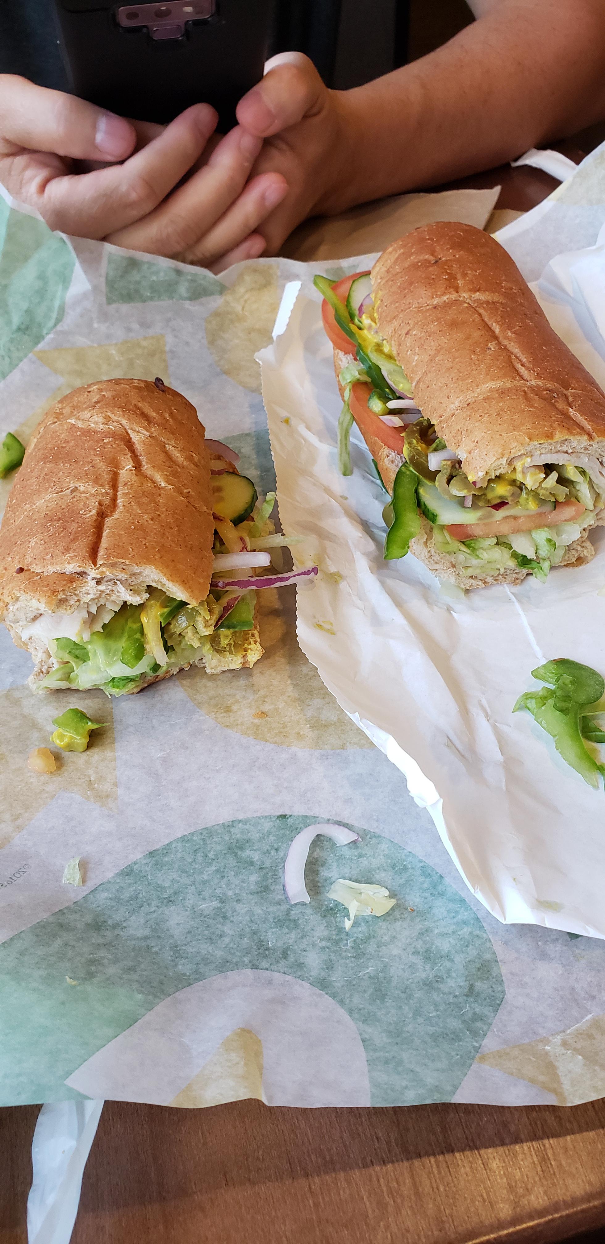 Turkey sub at subway whole footlong only around 530 calories! Already took some bites Dining and Cooking