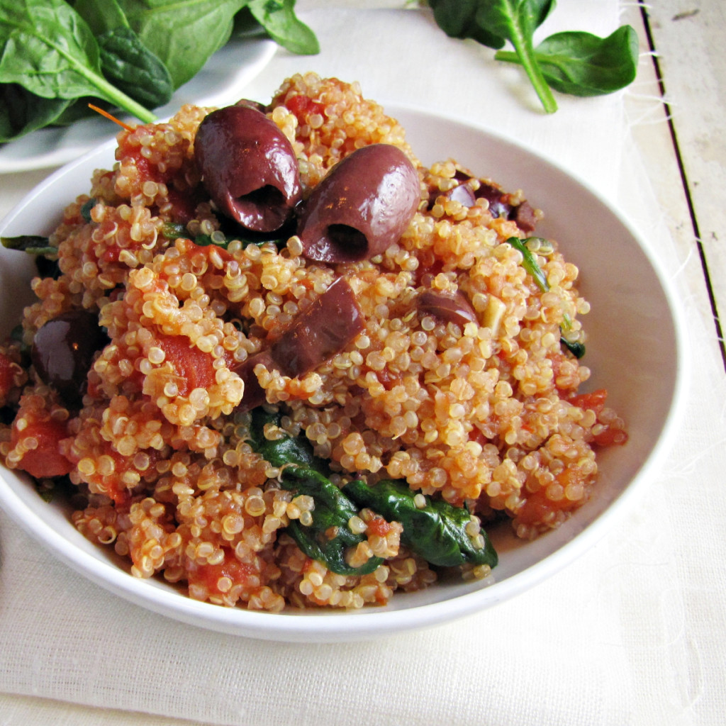 And so on, and so forth.   In the end, with only seven ingredients – quinoa, tomatoes, kalamata olives, garlic, anchovies, red pepper flakes, and spinach – this recipe totally rocked.  It’s packed full of flavor and richness, while still being healthy.  I mean, it has two superfoods in it (although, let’s be honest, almost everything seems to be a “superfood” these days), no dairy, and no gluten, and the only real source of fat is the olives, so it’s healthy fat.  Plus, it’s easy and satisfying and just the right amount of spicy.  Head on over to Greatist to check out the recipe!
