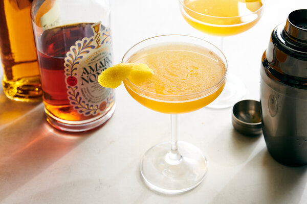 - In a shaker, combine the scotch, blanc vermouth, amaro and lemon juice. Add ice, cover and shake vigorously until the drink is well chilled, about 15 seconds. Strain into a chilled cocktail glass. Holding a lemon peel by its long edges, skin facing down into the glass, pinch the peel to release the citrus oils. Add it to the glass and serve.