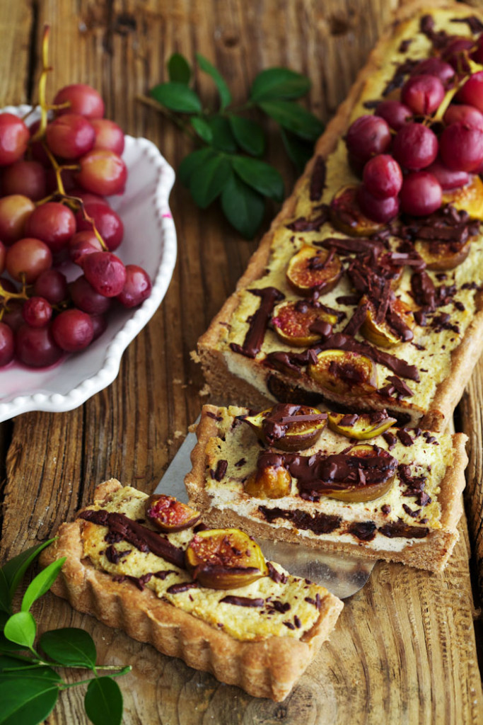5. Bake for 30-35 minutes, until the crust is golden and the figs are caramelized. Take out of the oven, sprinkle with the rest of chocolate and place back into the oven for a couple of minutes to let chocolate melt slightly.