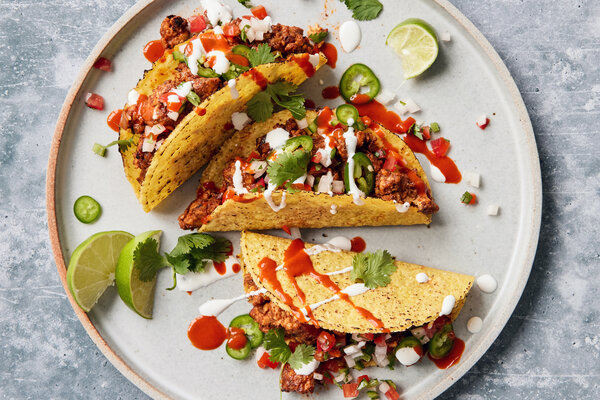 - Divide the filling between the taco shells, then top with chosen toppings.