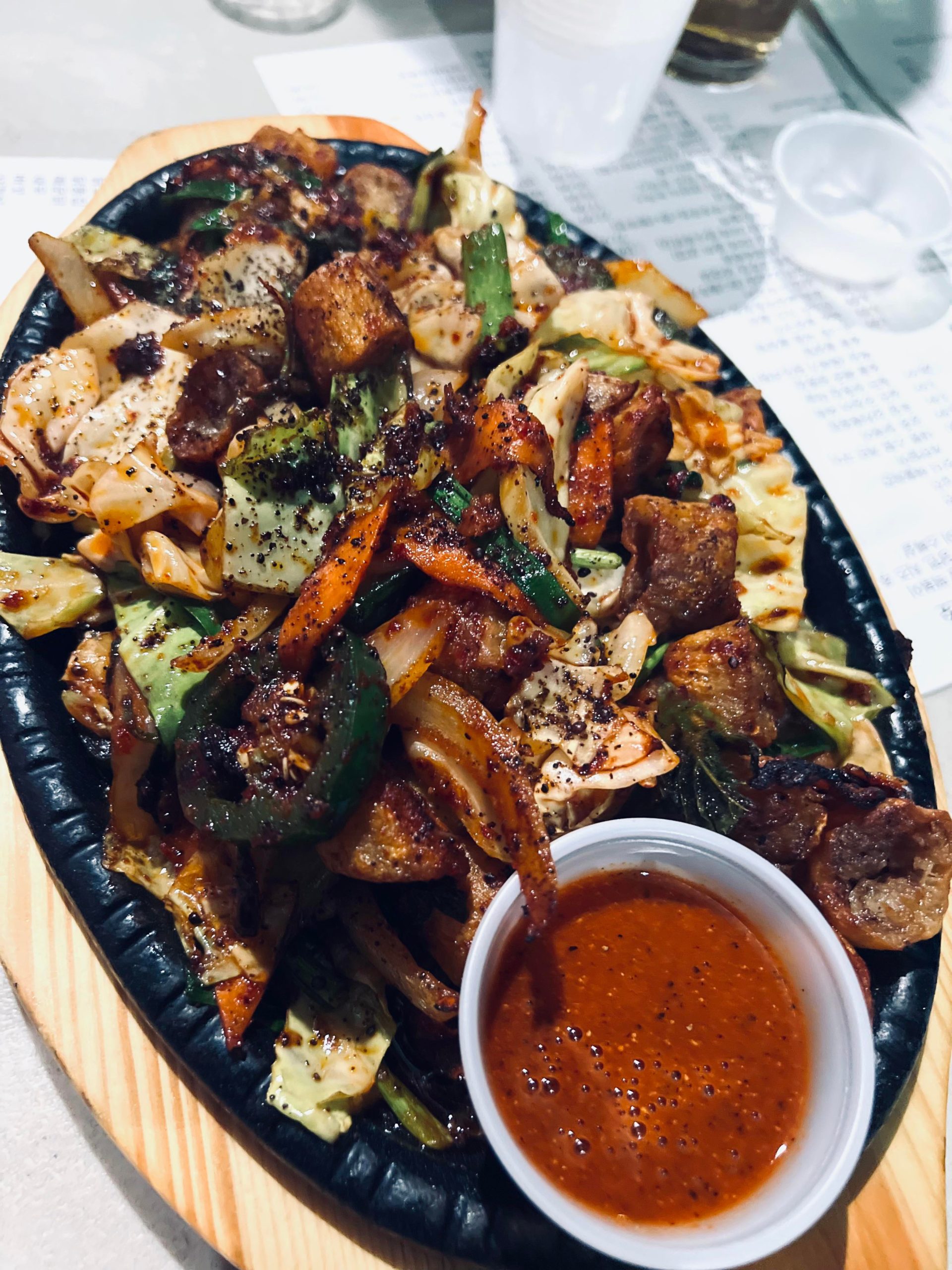 Extra crispy beef large intestine stir-fry