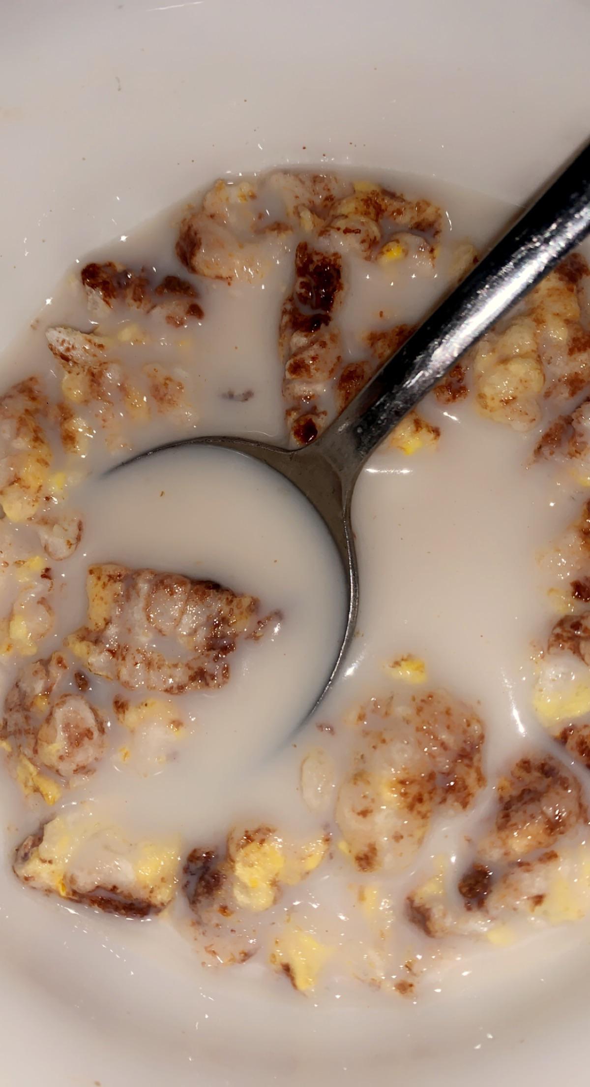 Craving cereal and had none in the house. Crumbled chocolate rice cakes to make diy cereal. Looks grim but works surprisingly well, highly recommend. Dining and Cooking