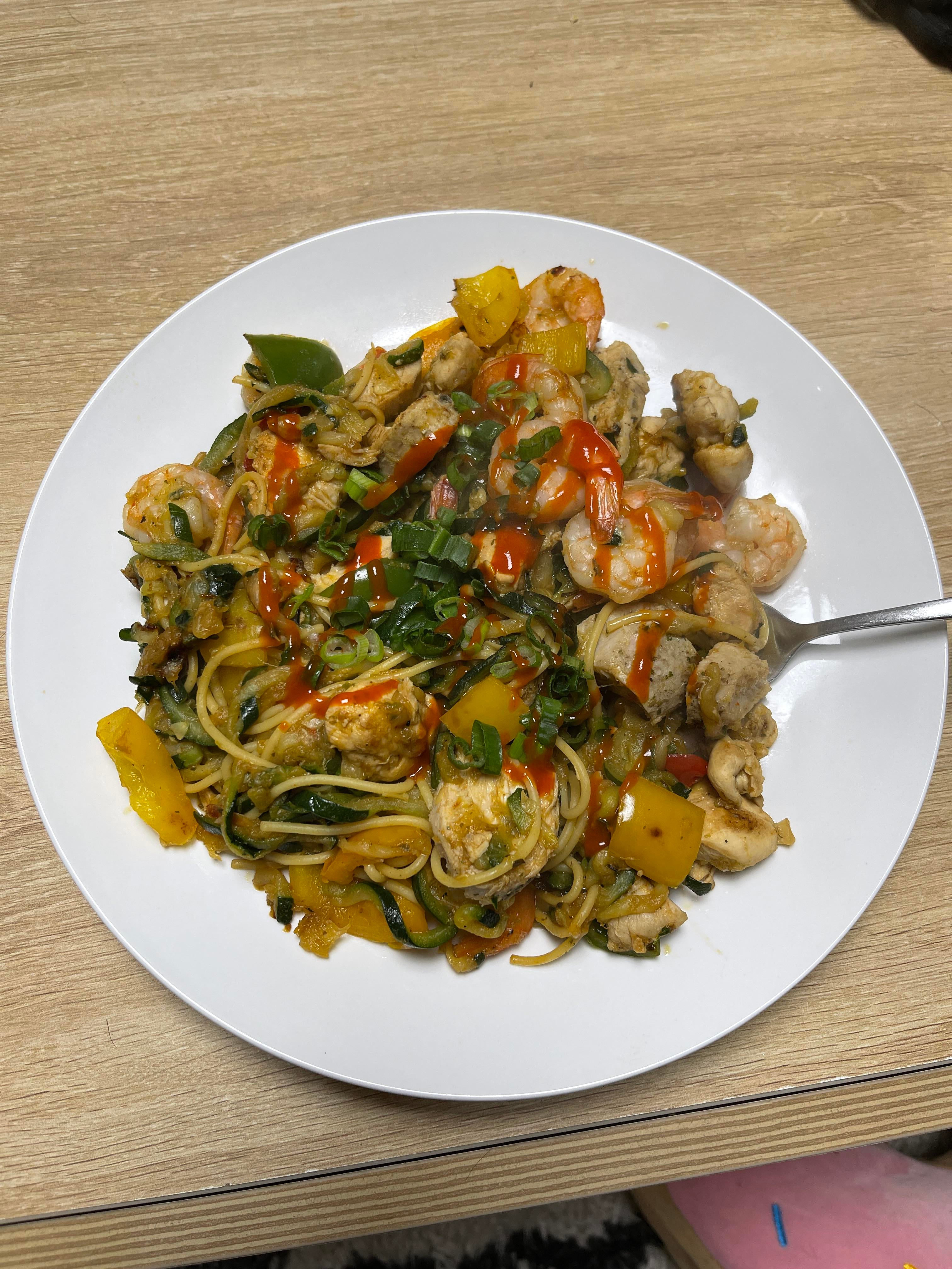Low Carb Chow Mein – Carbs: 24g, Fat: 2.3g, Protein: 77g. Mixing noodles with zucchini spirals makes a huge difference! Dining and Cooking