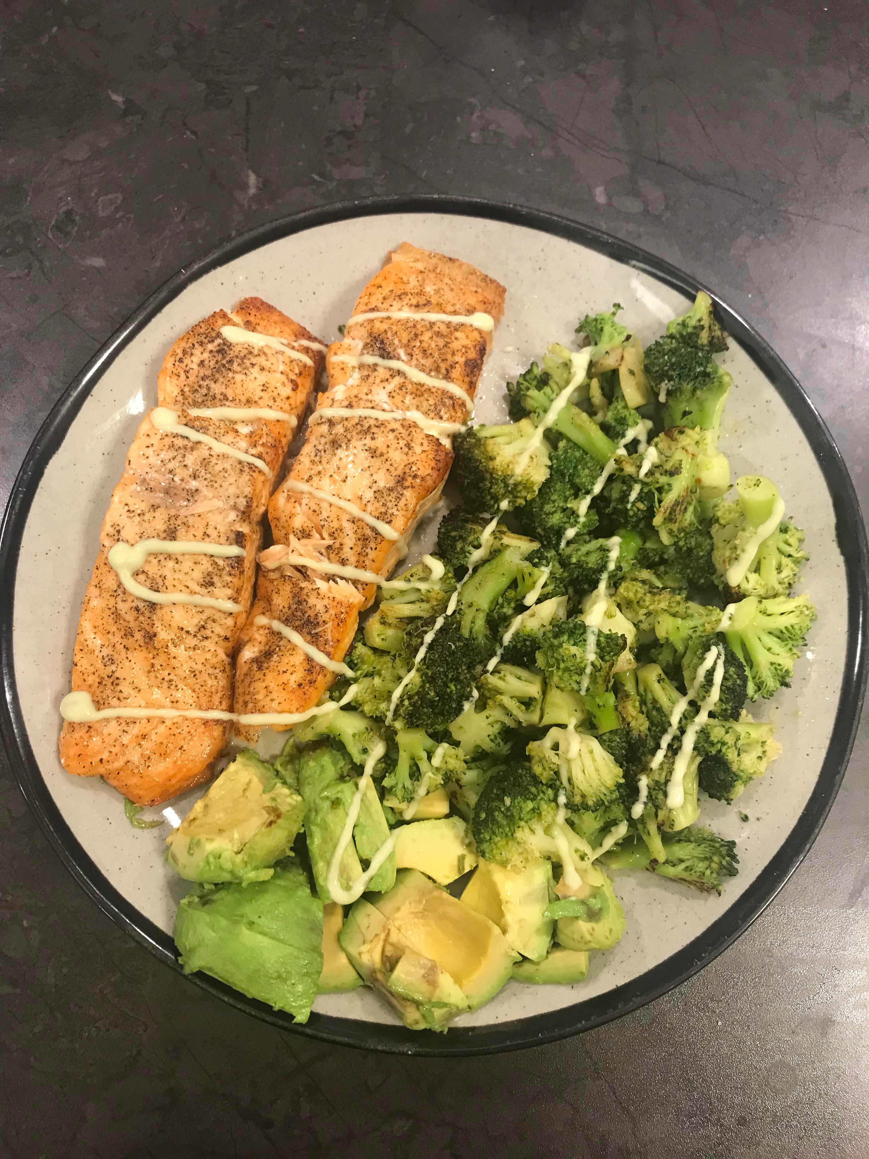 I am doing OMAD for general health purposes and this is my meal for the day. 450 grams of salmon, 400 grams of broccoli cooked with 2 tablespoons of olive oil and 1 avocado. I am really surprised that this is under 1500 calories.