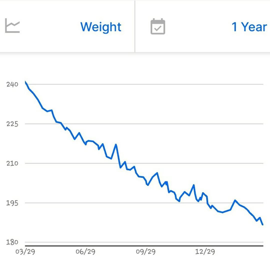 I bought my scale exactly one year ago today and had my first weigh-in at 241.4 pounds (5’2 35F, 1700 cal/day.) Today weighed in at 186.8, 54.6 pounds lost. TRUST THE PROCESS. It’s not linear. Stick with it.