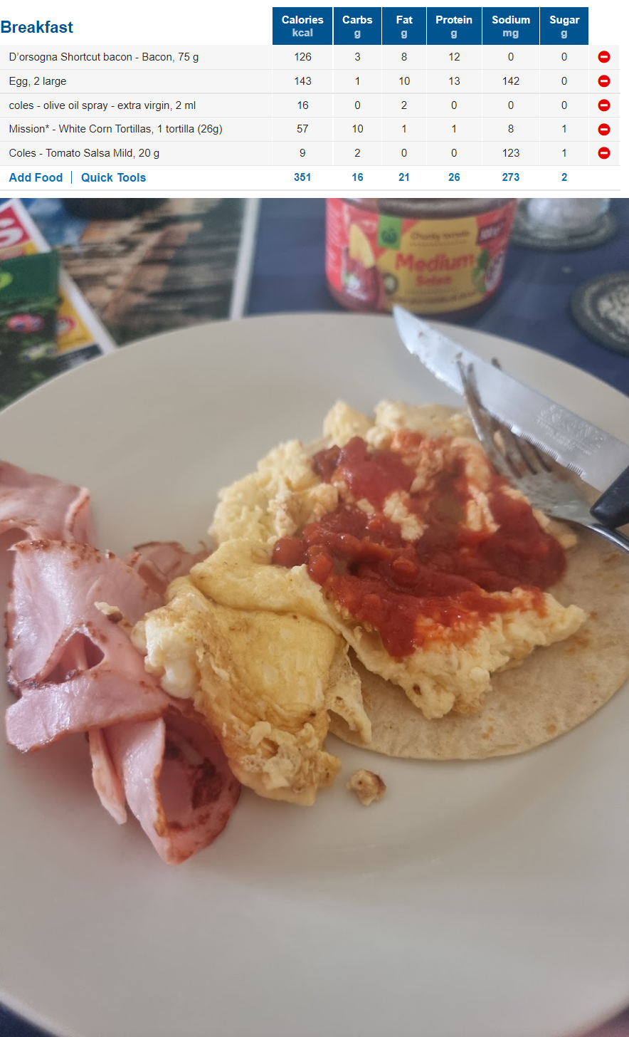For decades I fell prey to the ‘cereal for breakfast’ schtick. Cereals, Oats, Muesli – I rotated through them all – with the high GI and carb crash that followed. For the same cals (350) I can have a protein rich, satisfying bacon-and-eggs. Lose the corn tortilla to drop below 300. Yay 4 Bacon!