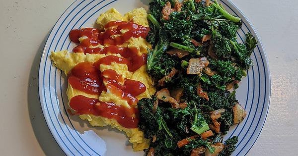 Went hard off course for my birthday week and it was delightful. Back on the wagon this morning with kimchi kale and eggs (363)