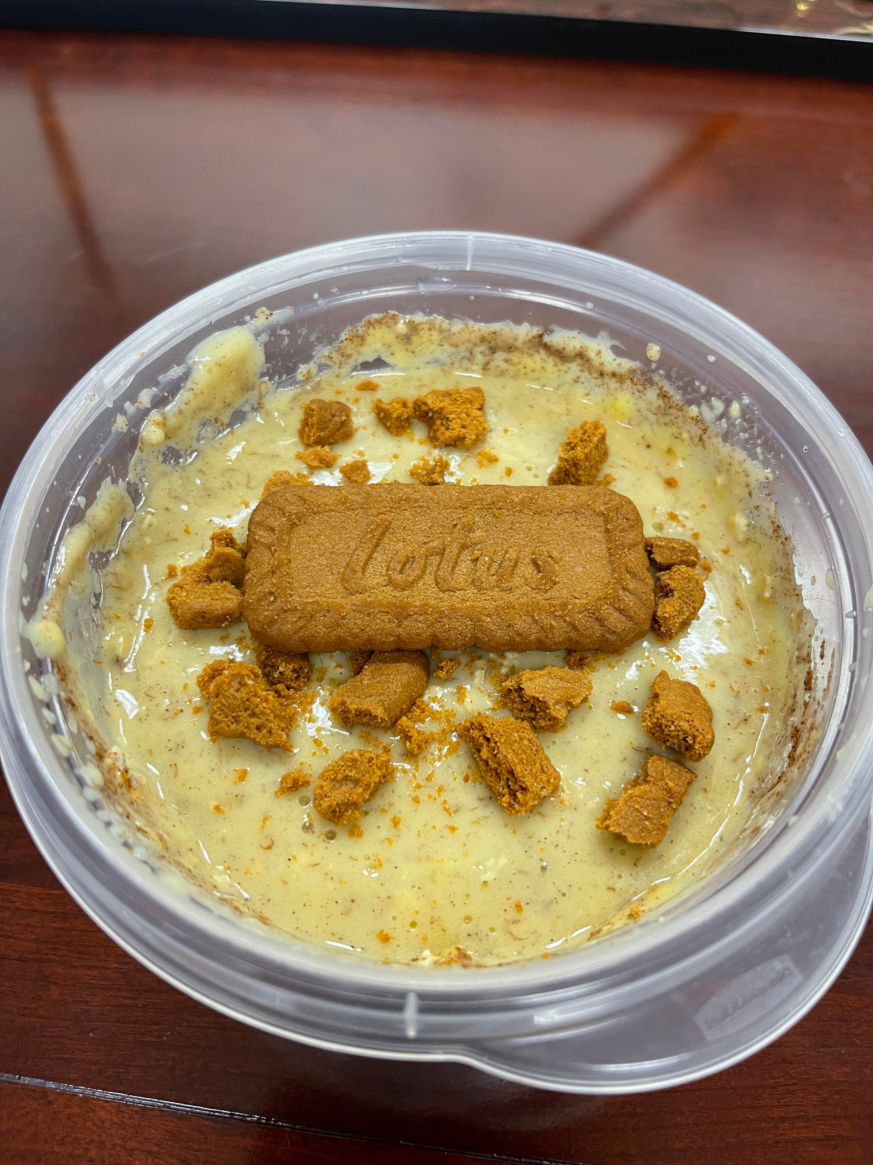 Protein Banana Oat Pudding. This one is a must have! 315 cals 39.8 carbs, 6g fat, 28g protein. 390 cals with the 2 Biscoff cookies. Dining and Cooking