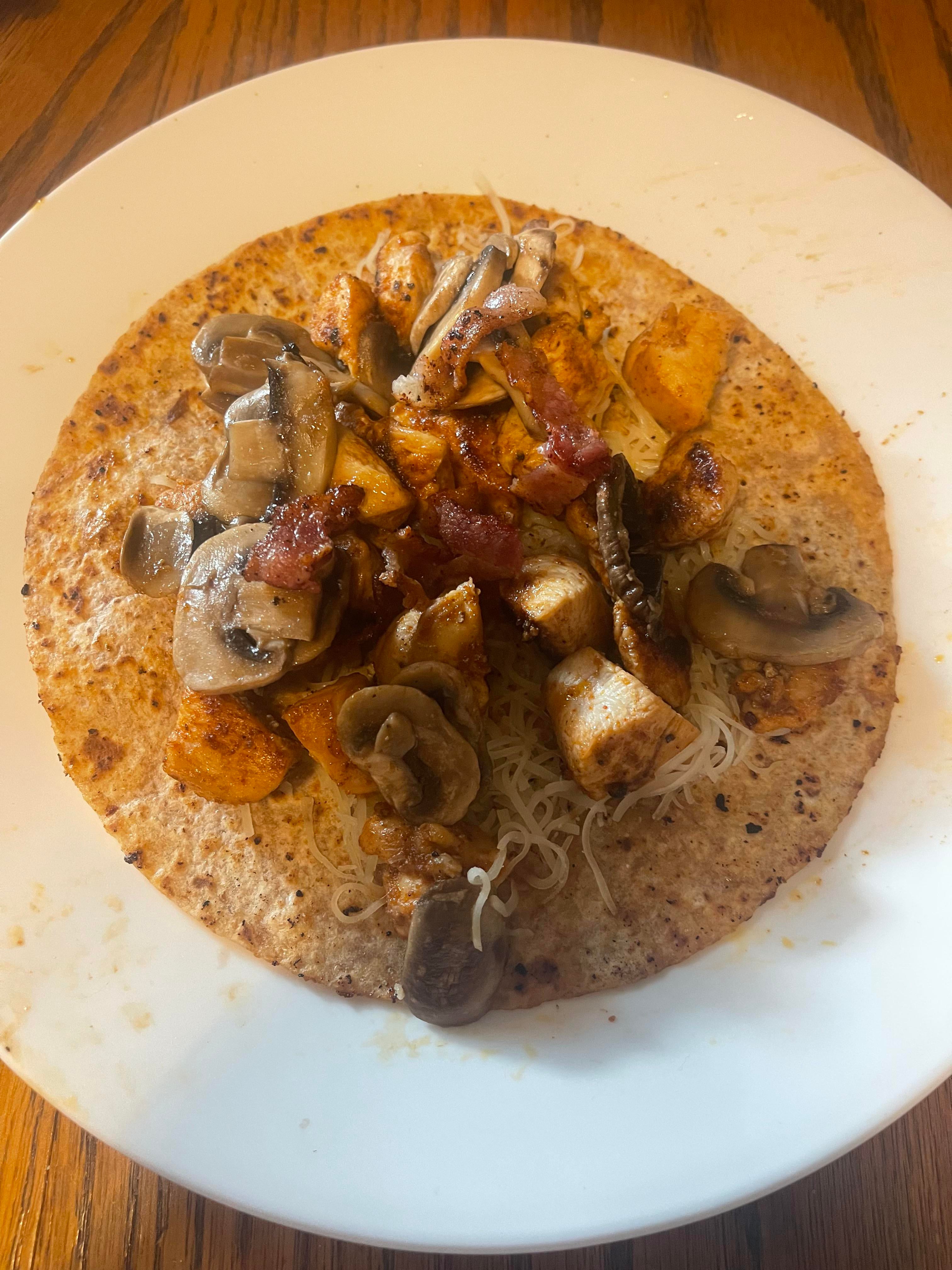 Only on day 4 and have a long way to go. But this chicken bacon wrap will be my friend through this. 468 calories.