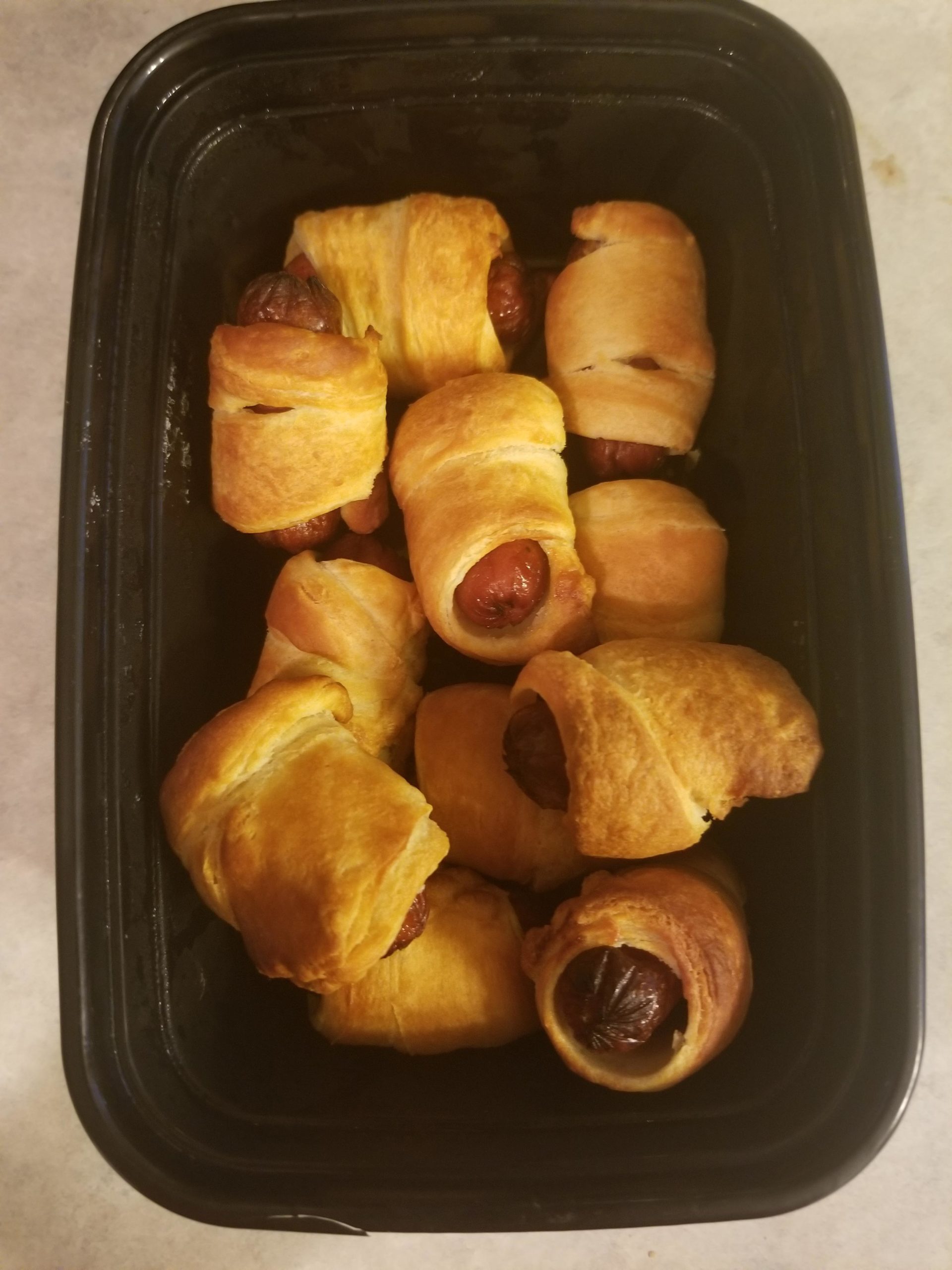 When you want a hot dog, but want to be calorie conscious… Lil Smokies + Crescent dough. 370 calories for 6.