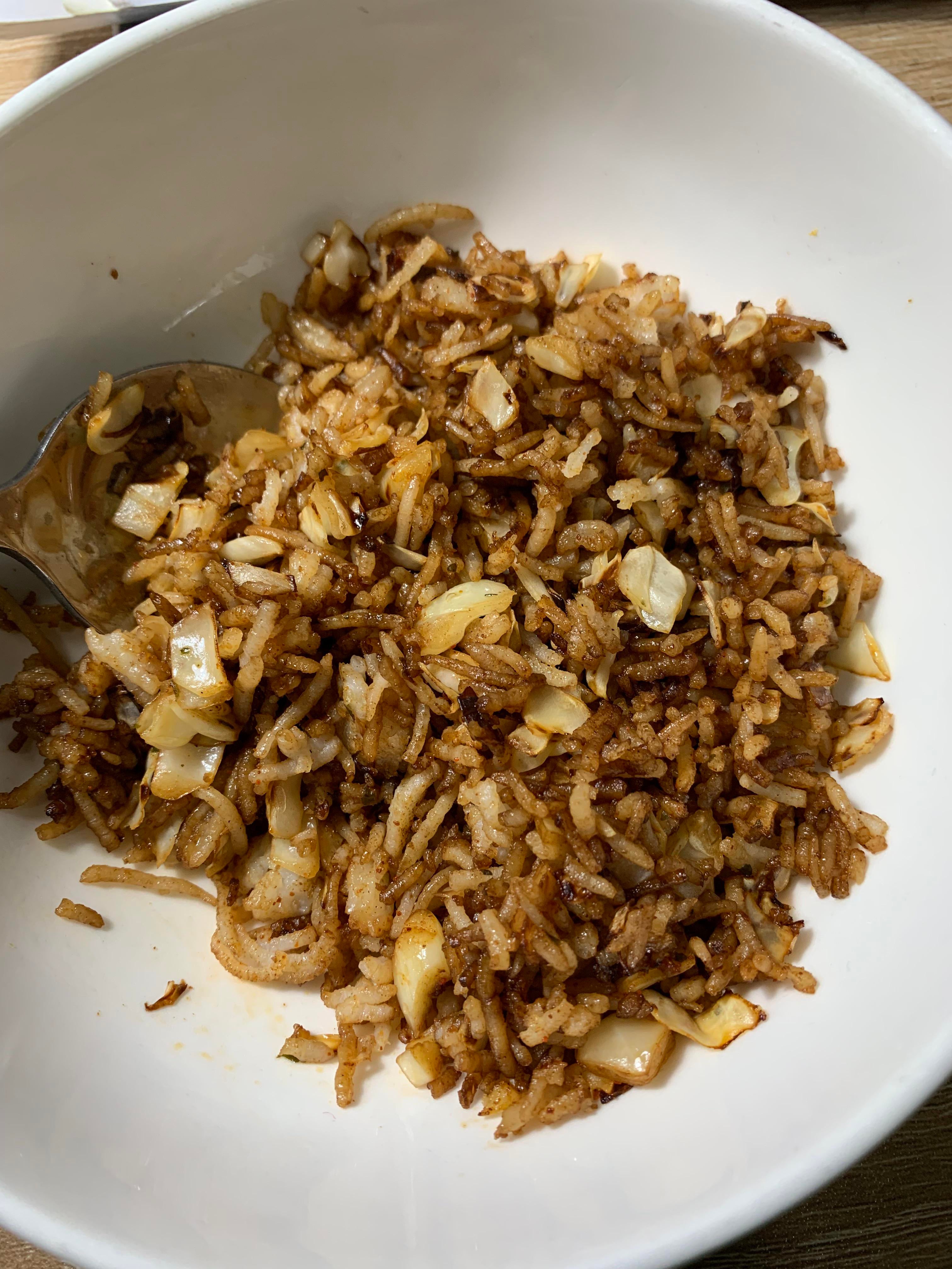 Cabbage and rice, fried. Around 200cals? And alot of chilli powder