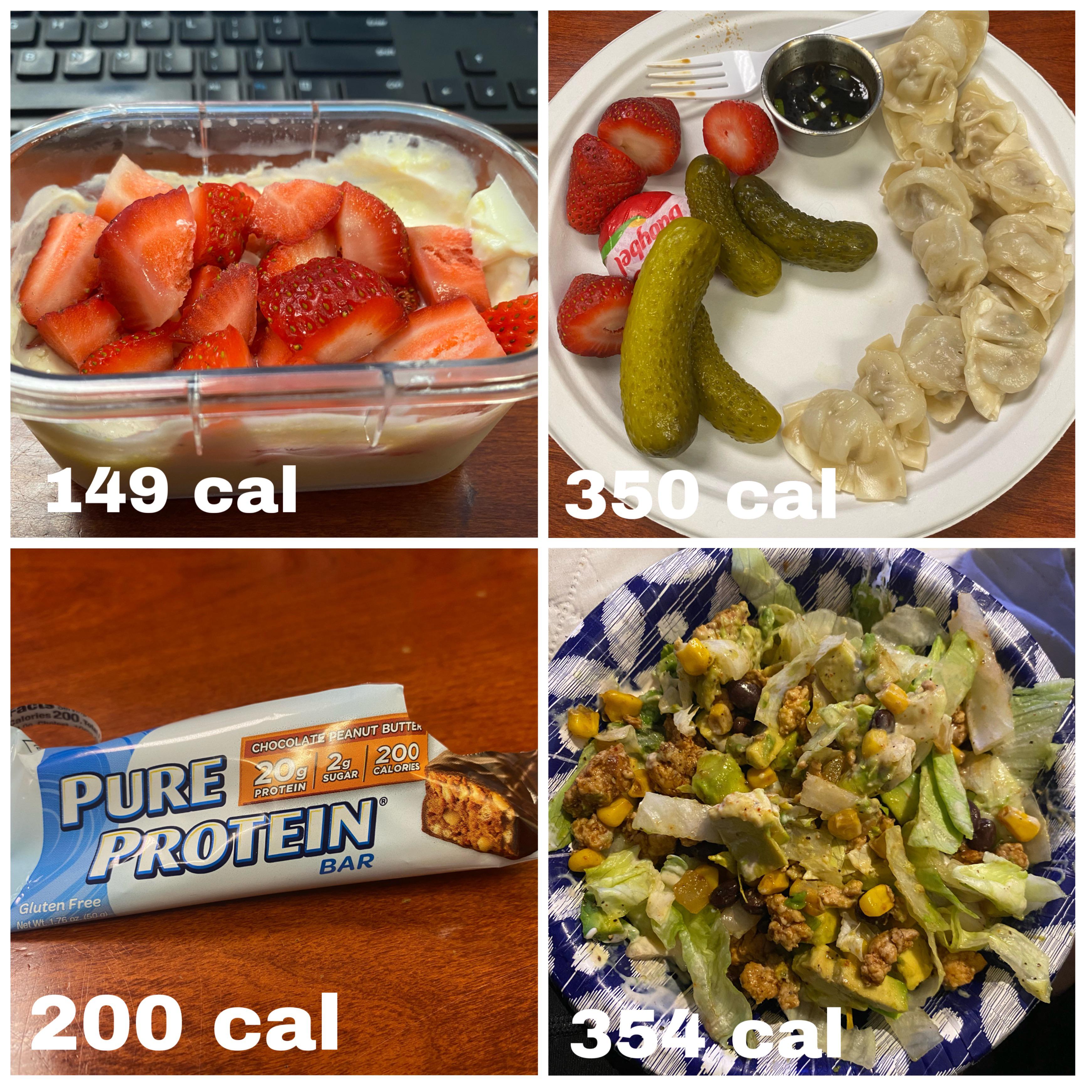 I usually actually aim for 1,900 but almost never get it lately, so here’s my 1,053 cal day
