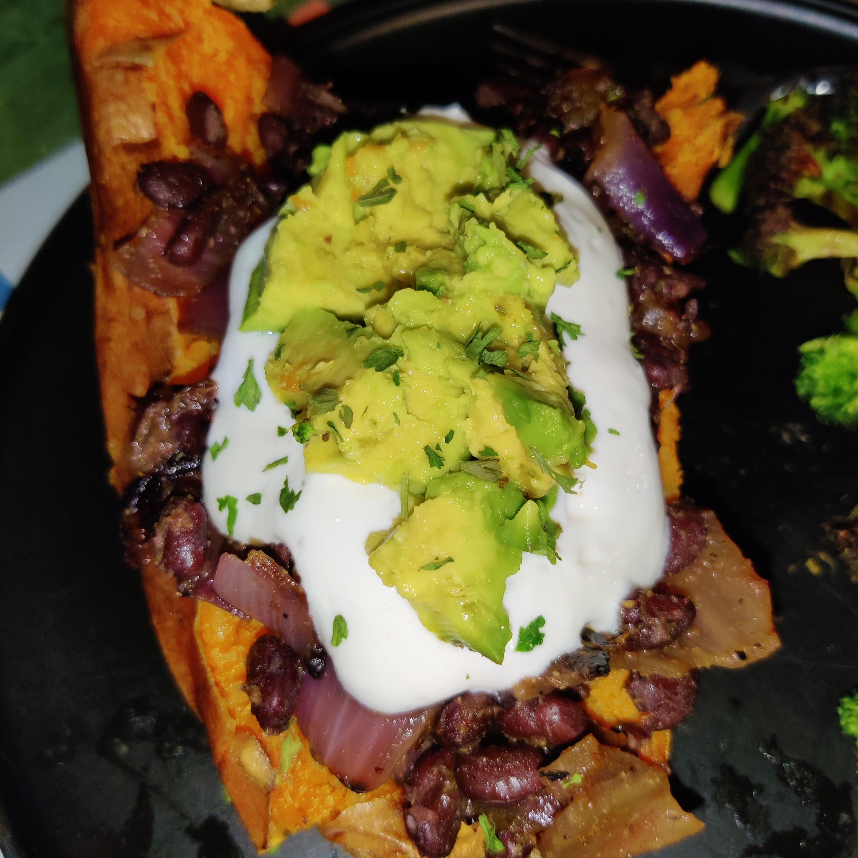 Made this stuffed sweet potato with airfried broccoli! (~500 calories)