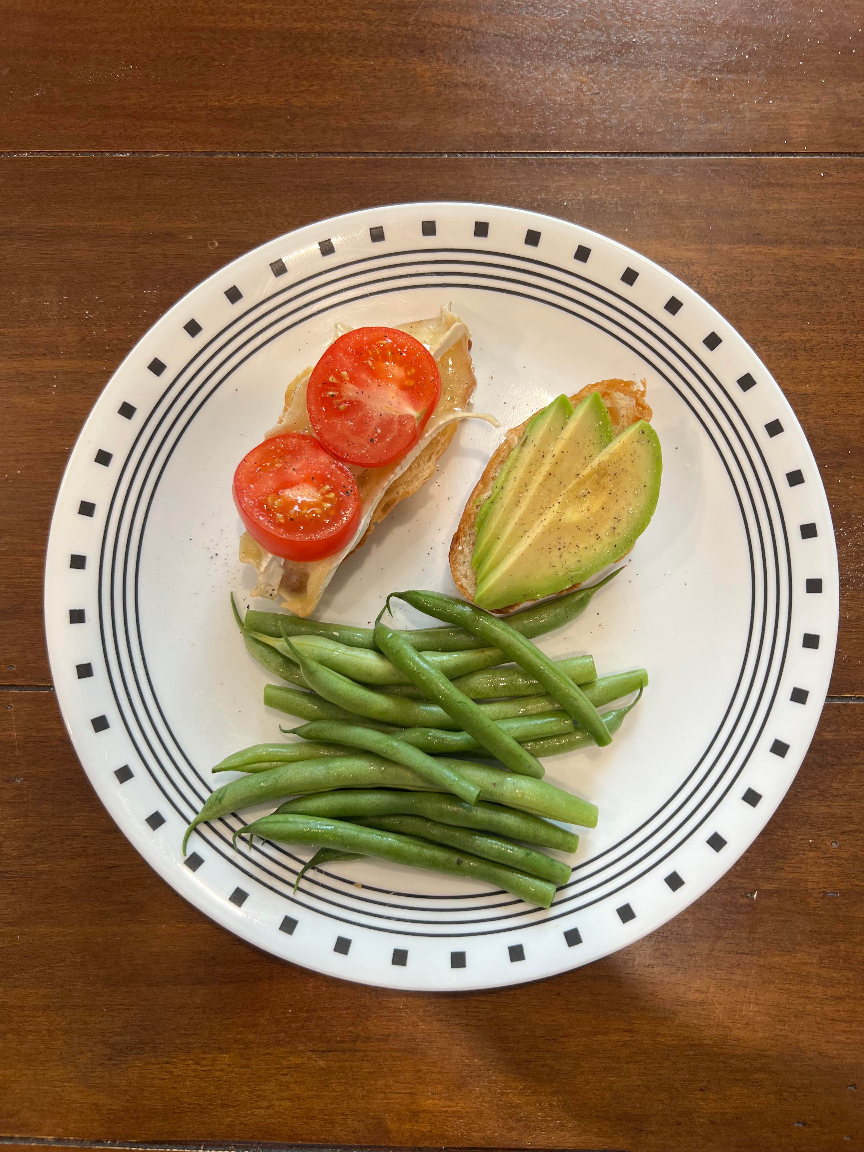 Light Lunch – Mini Croissant with Brie and Tomato + Avocado and a side of Green Beans (236 Calories) Dining and Cooking