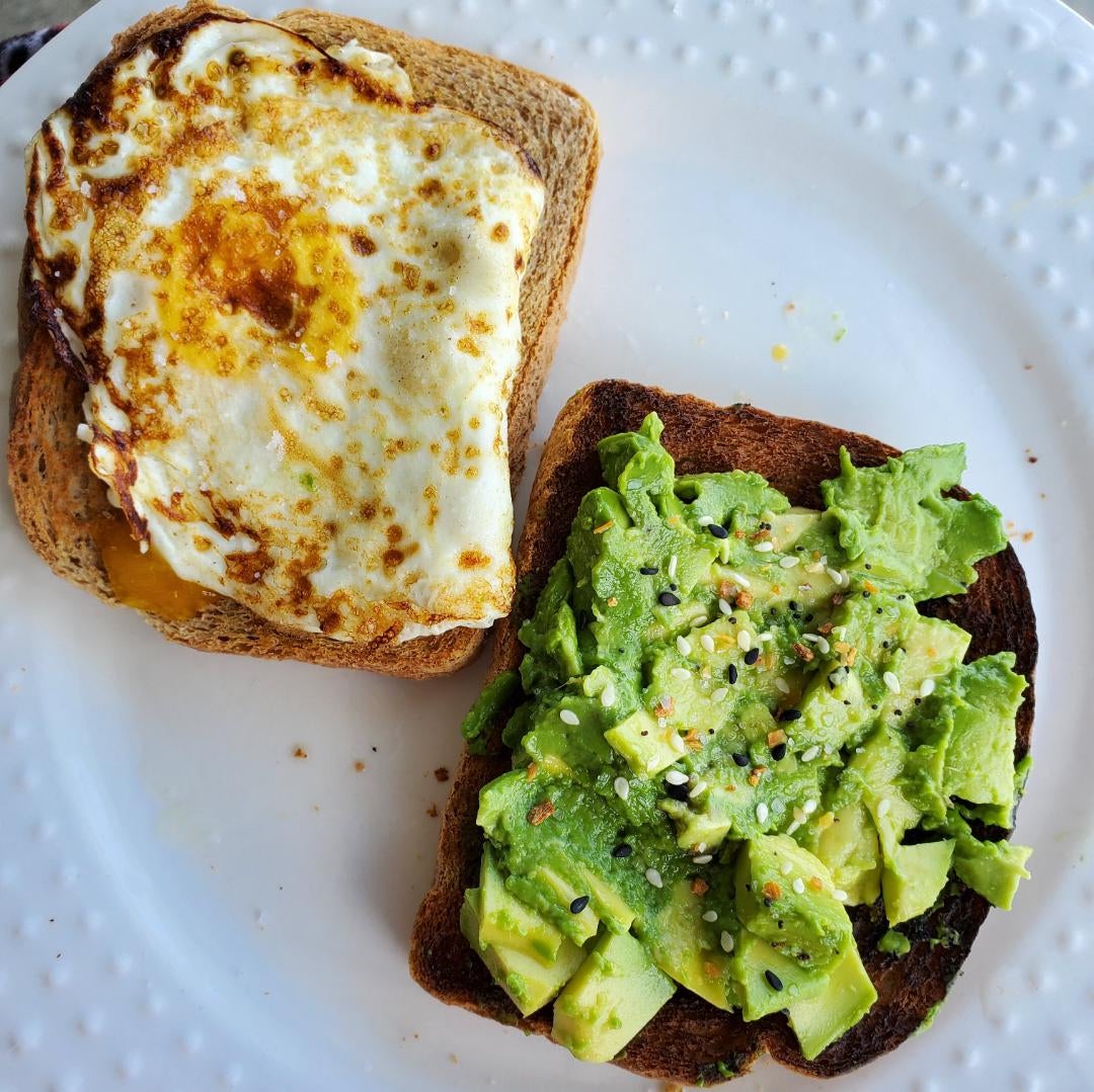 indecisive toast (355kcals, 20.6g c, 30.8g f, 16.2g p)