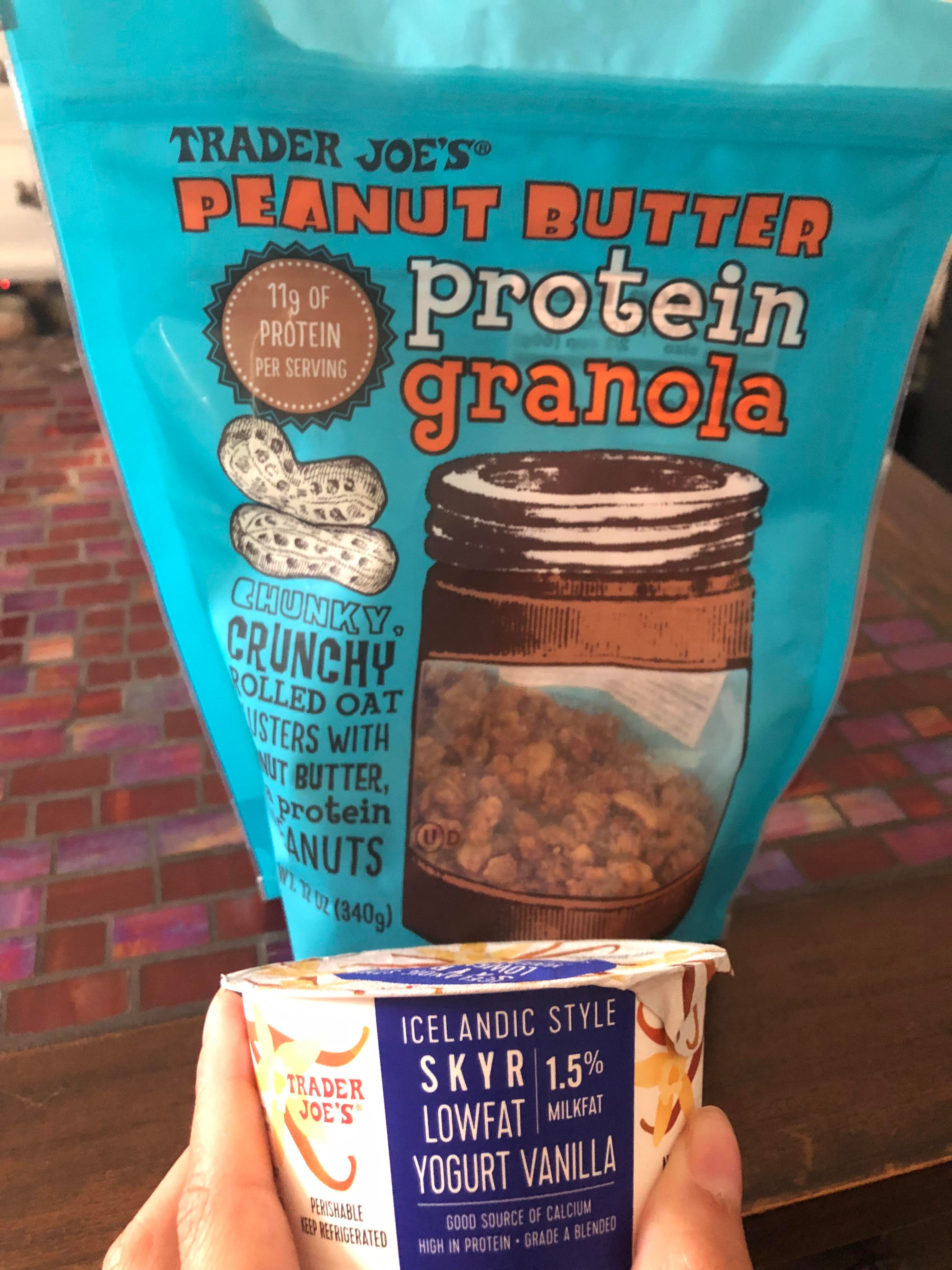 For those tired of protein shakes. 200 ish cals/19-20g protein and sooo good. I sprinkle the granola on top. All at TJs and cheap. Dining and Cooking