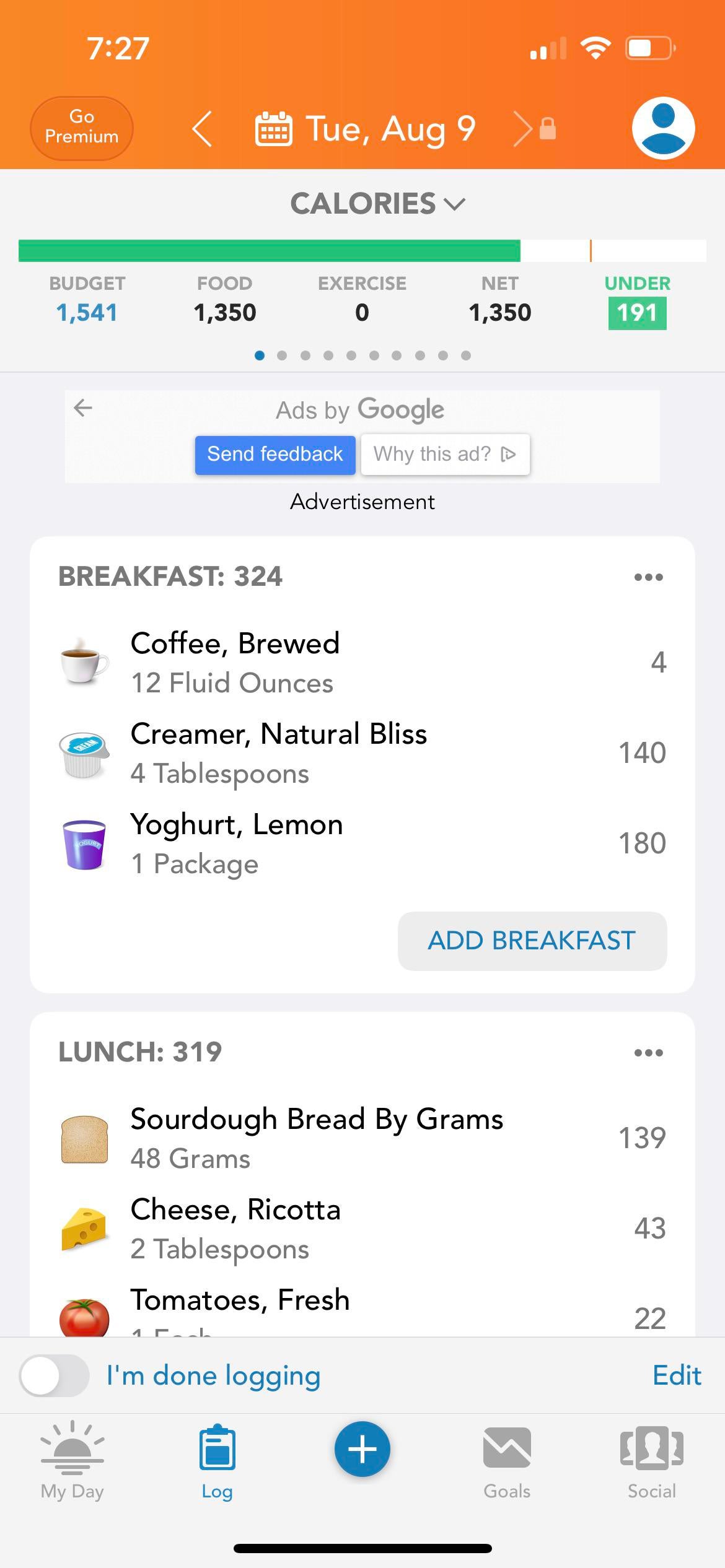 Remove if not allowed but is anyone else getting ads on LoseIt’s free version now? (I went to log my dinner and the ad opened up RIGHT in the middle of the dinner section – missed getting the screenshot before it moved to the top. So annoying!)