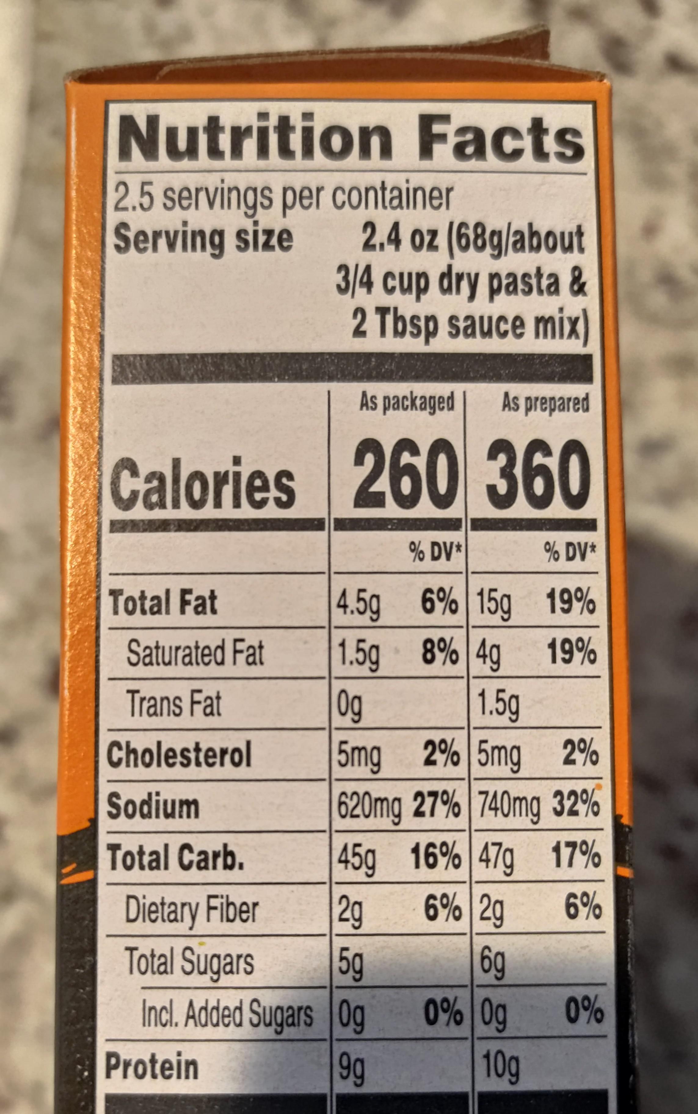 Why is labelling like this even legal? It’s a 650/900 calorie package of macaroni. Just make it 3×300 or 4×450!