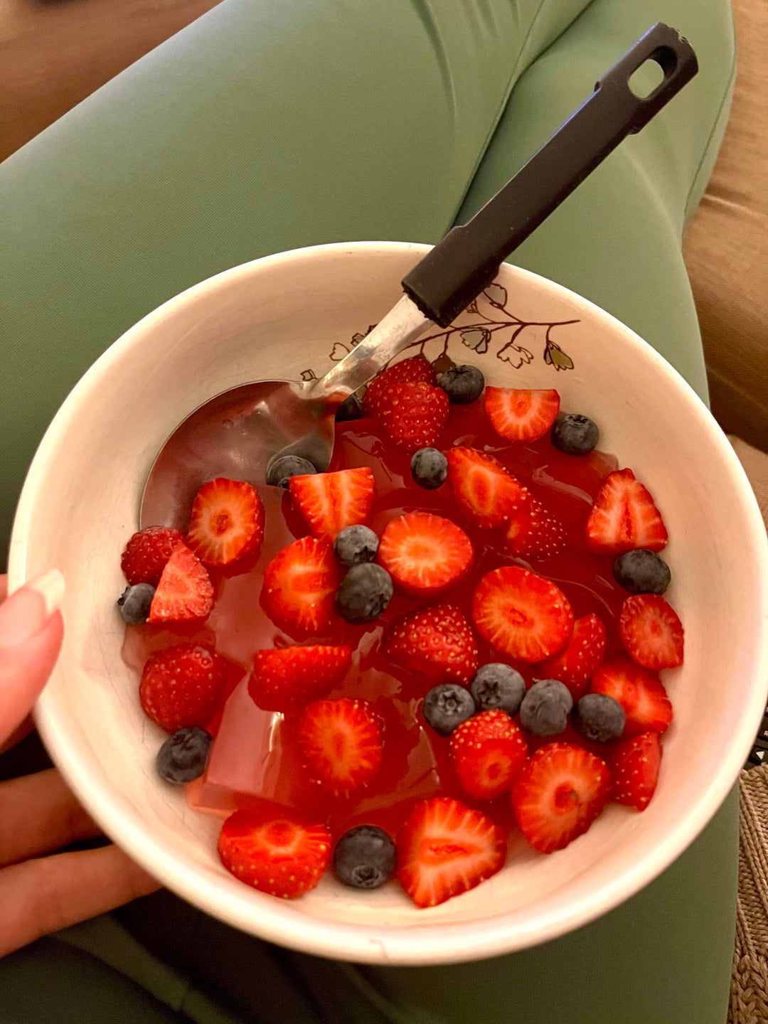 I was in the mood for some dessert, this hit the spot. 2 pots of 5cal no sugar jelly and fruit! Dining and Cooking