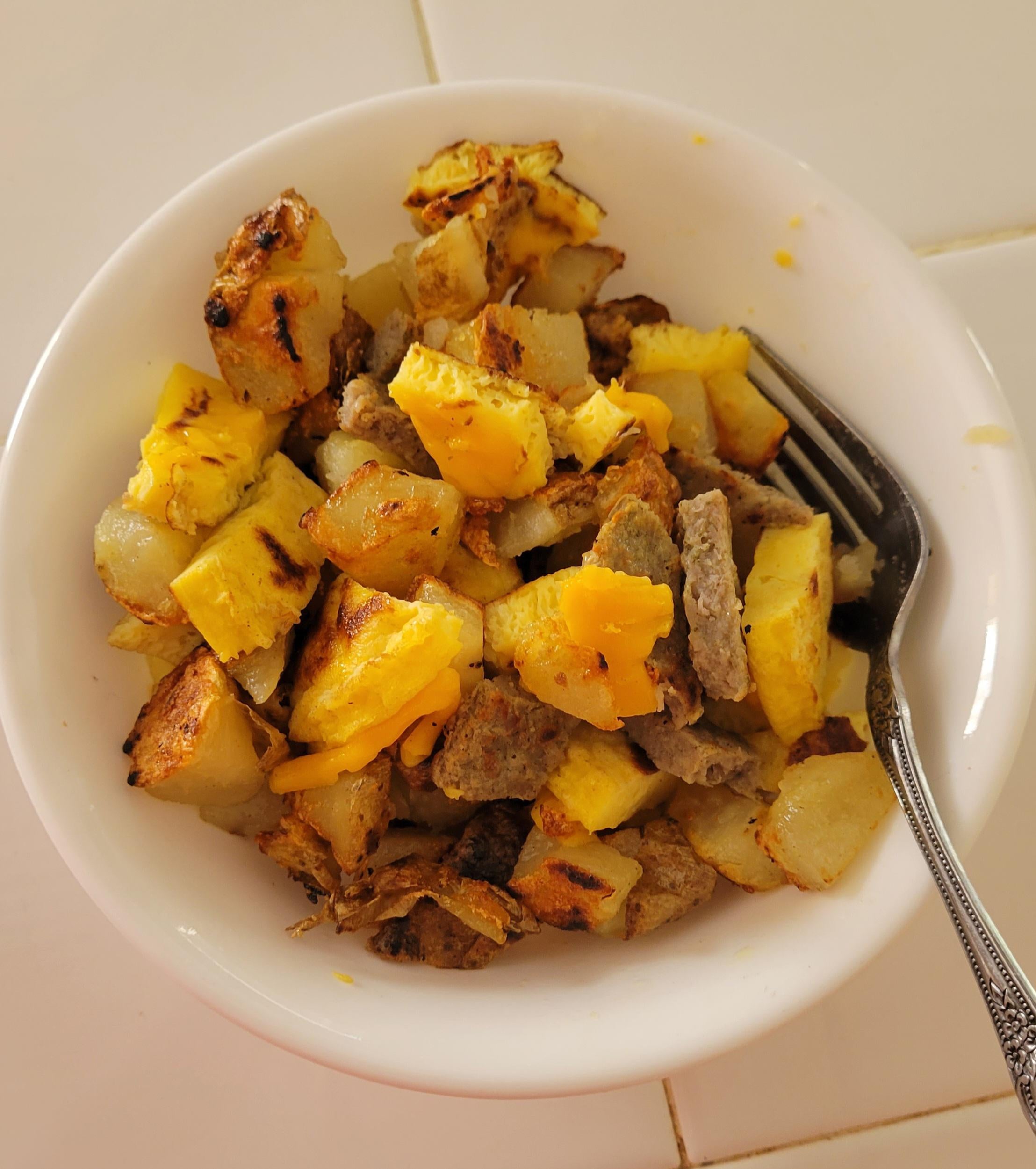 523 cal turkey sausage, egg, cheese and potato breakfast bowl