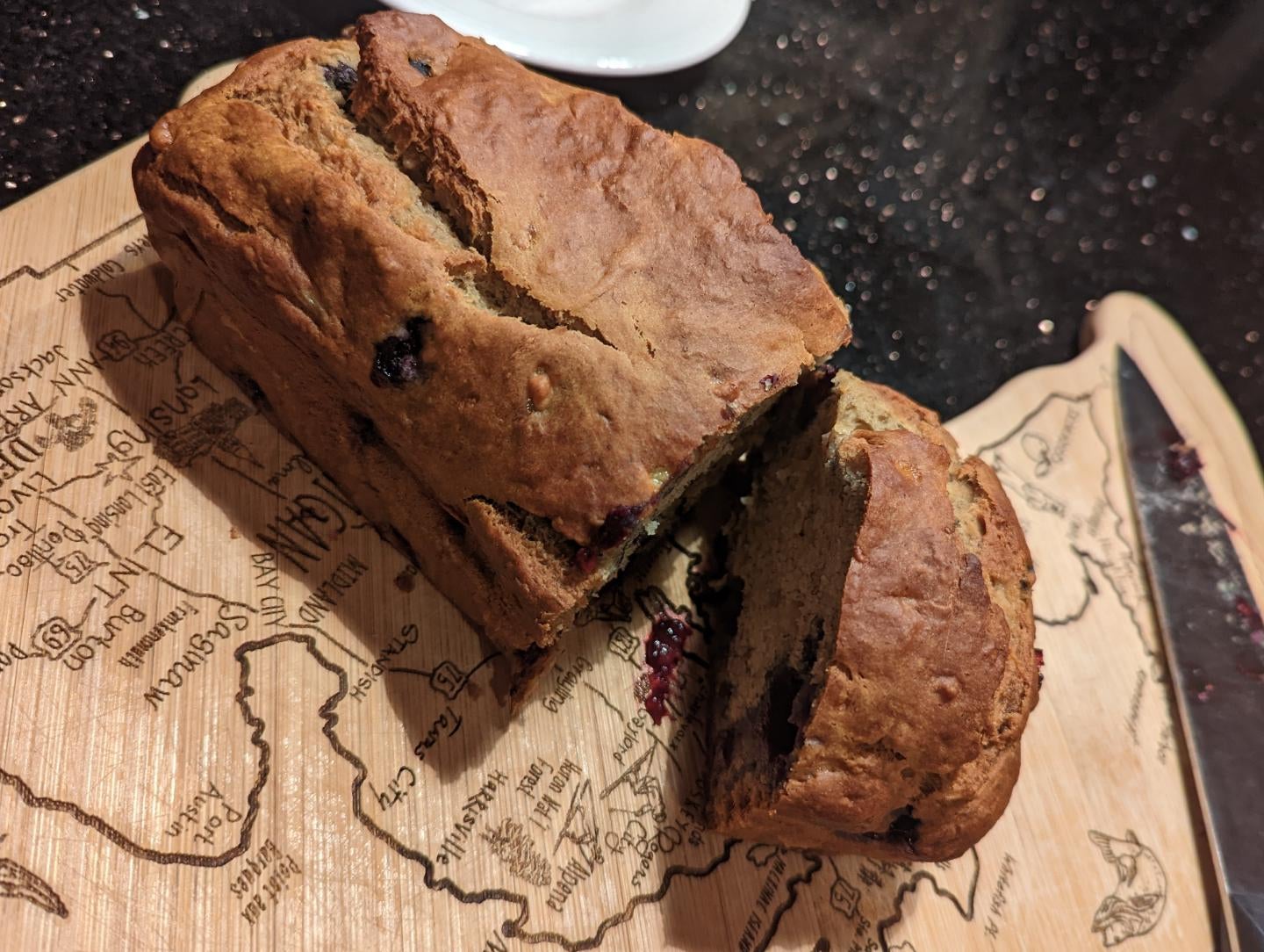 (homemade) low calorie banana blueberry bread (140 calories per slice)