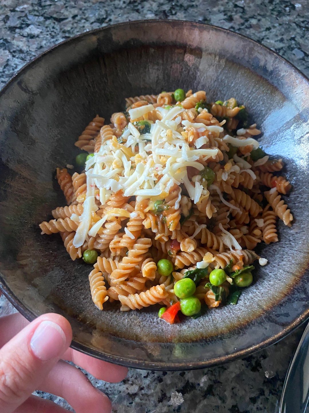 Quick pasta dinner with frozen kale & peas. 18 g of protein & 408 calories. by LipSenseLeah Write A CommentYou must be logged in to post a comment.