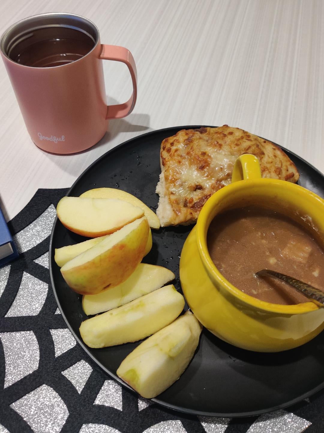 Trader Joe’s French Onion soup and foccacia, an apple, and a Chai teaby mynameisfritz Write A CommentYou must be logged in to post a comment.