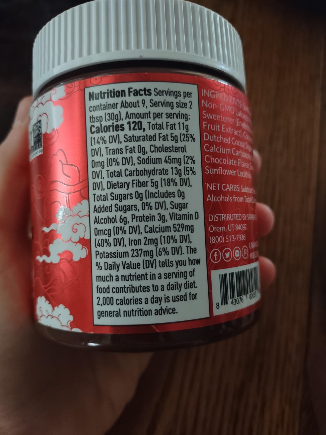 Nutella alternative – 30g for 120cals, 0g sugar, sweetened with monkfruit. Not exactly like Nutella, but close!