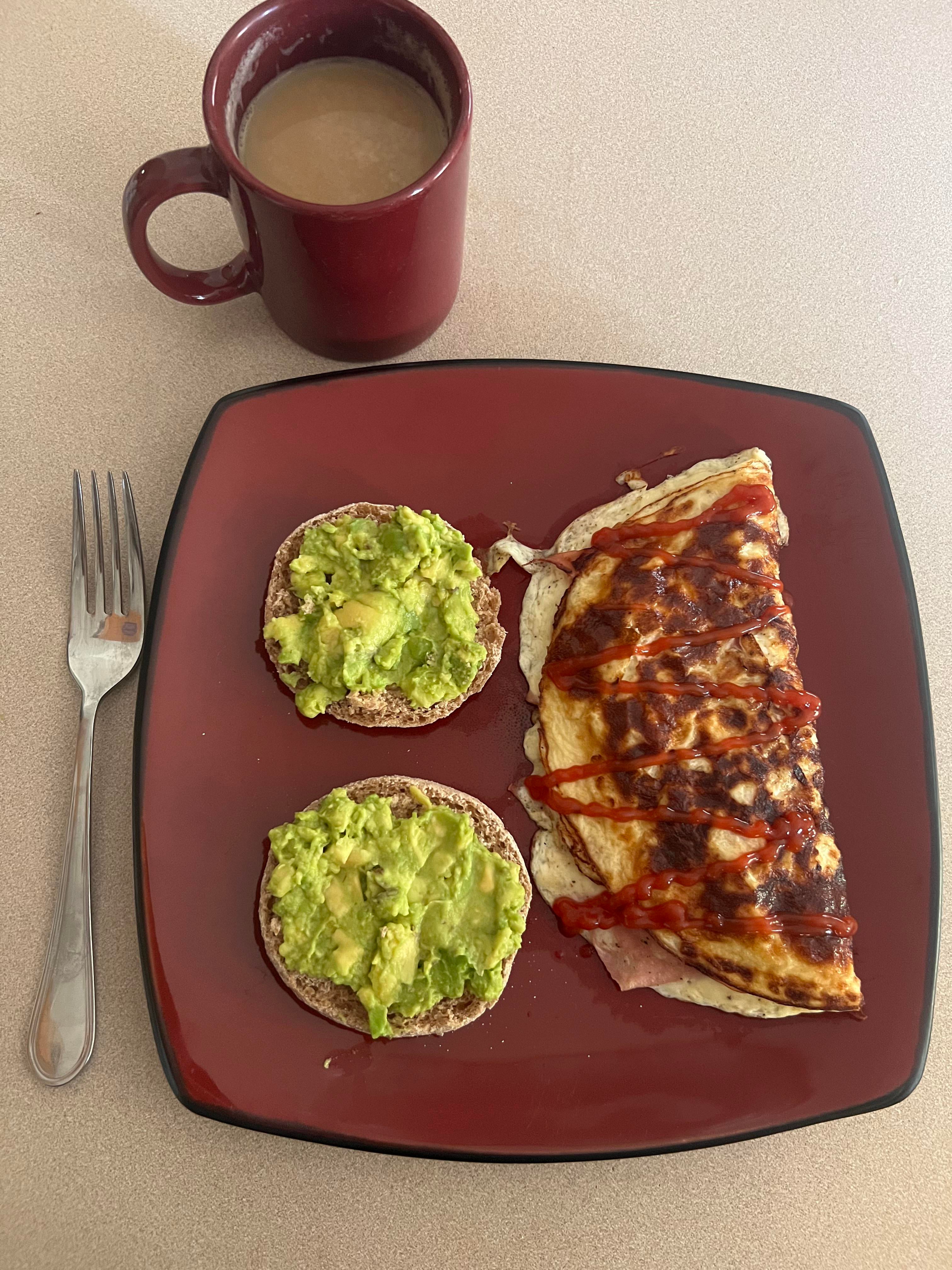 Loved this super healthy avocado English muffin, a Swiss & turkey omelette and pumpkin spice coffee 🤤 ~ 590 calories by Akiss94 Write A CommentYou must be logged in to post a comment.