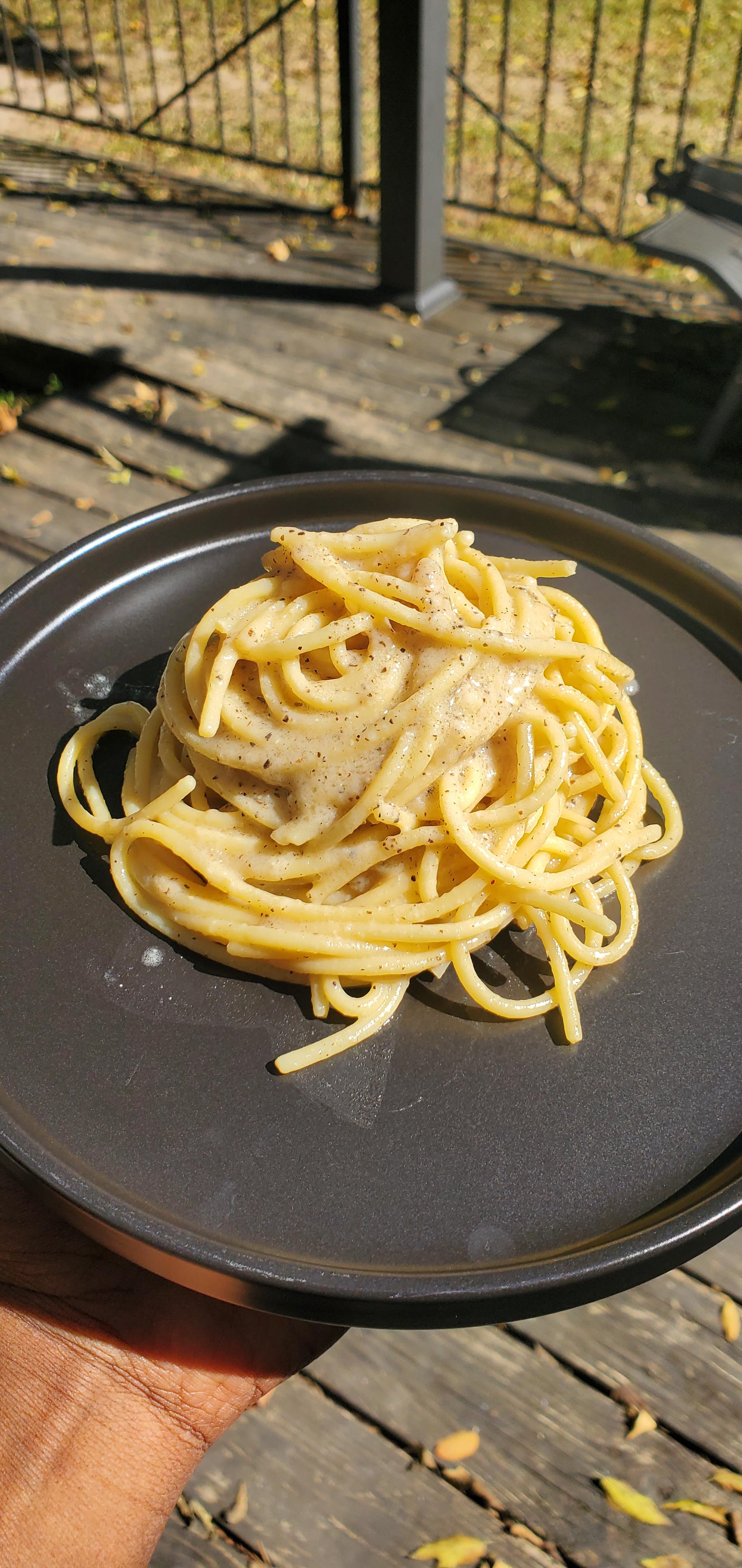 spaghetti with garlic, Parmigiano, Pecorino and a Parmigiano broth with black pepper.by Yaboipalpatine Write A CommentYou must be logged in to post a comment.