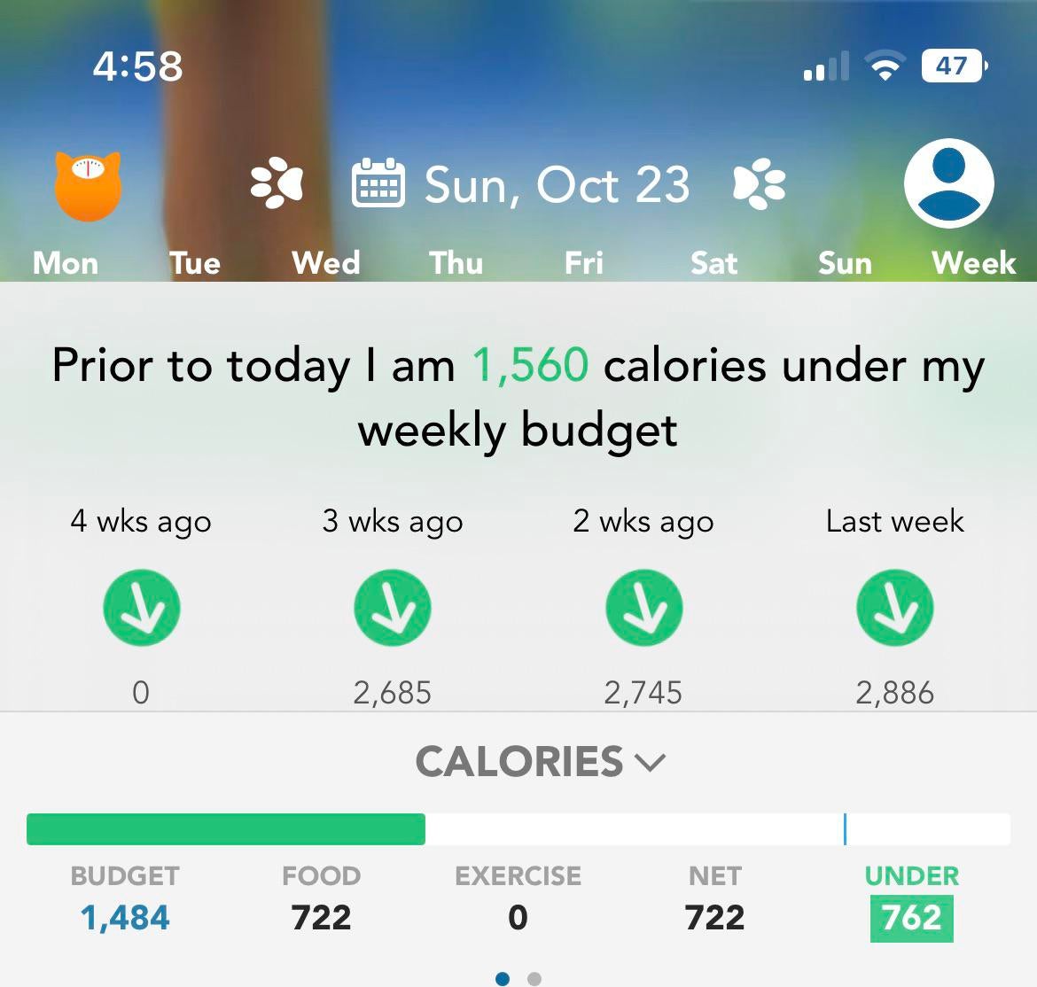 Also just to add, I’ve only really been tracking calories this week so I’m just nervous it’s taking into account all the weeks I had the app but didn’t really track