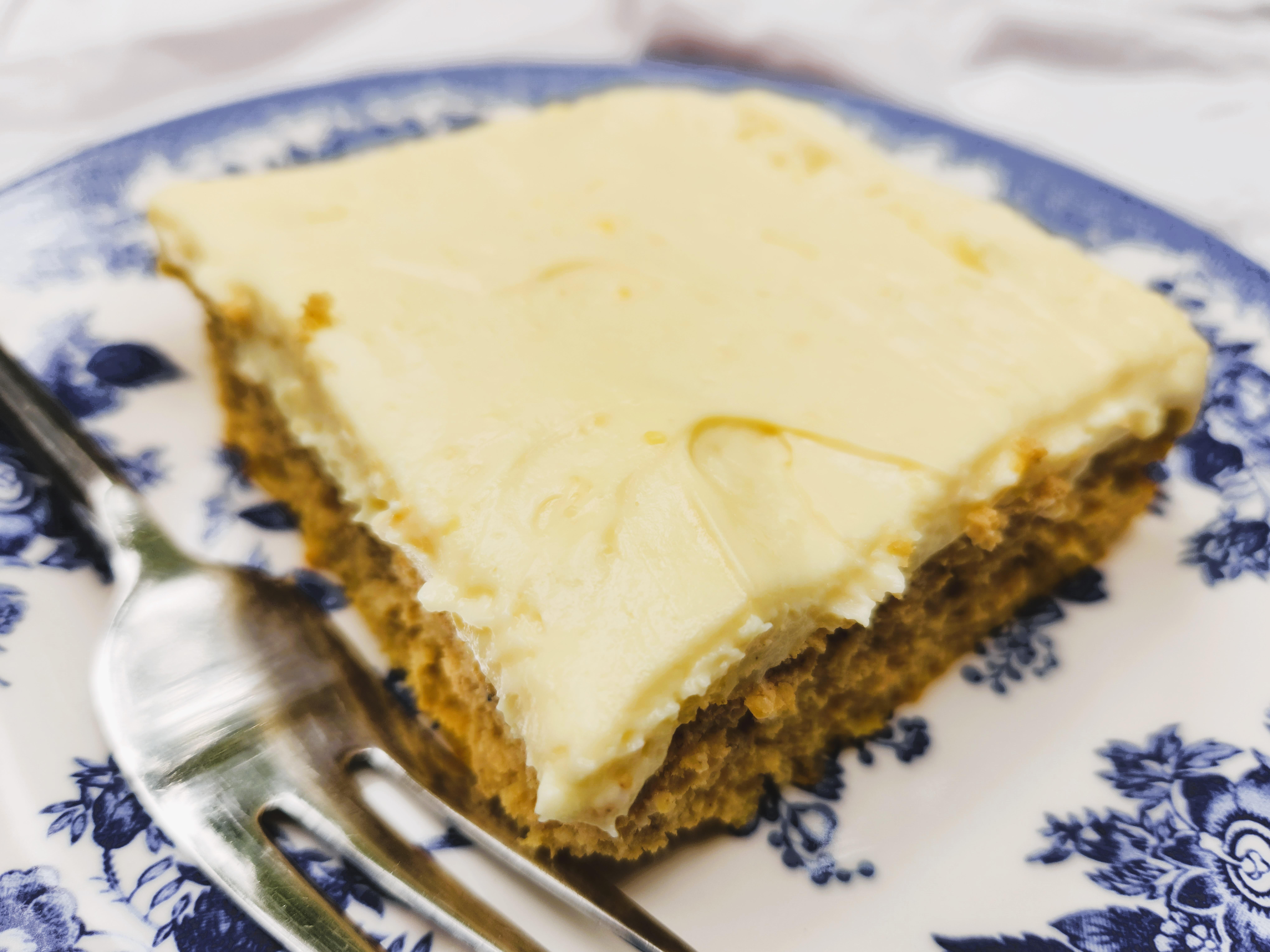 1. Beat cream cheese, vanilla pudding mixture, 1/2 cup milk, 2 tbsp sugar-free maple syrup and 1 tsp monkfruit sweetener on Medium to High for 2 to 4 minutes, until frosting is smooth and the pudding has begun to set. 2. Pour frosting on cake and smooth. 3. Cool in refrigerator for at least 2 hours.