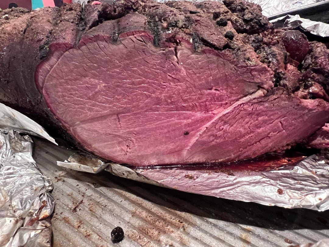 Brined for 1 week in cranberry juice, brown sugar, salt,garlic,rosemary, peppercorns . Then dry rubbed and smoked over cherry wood .
