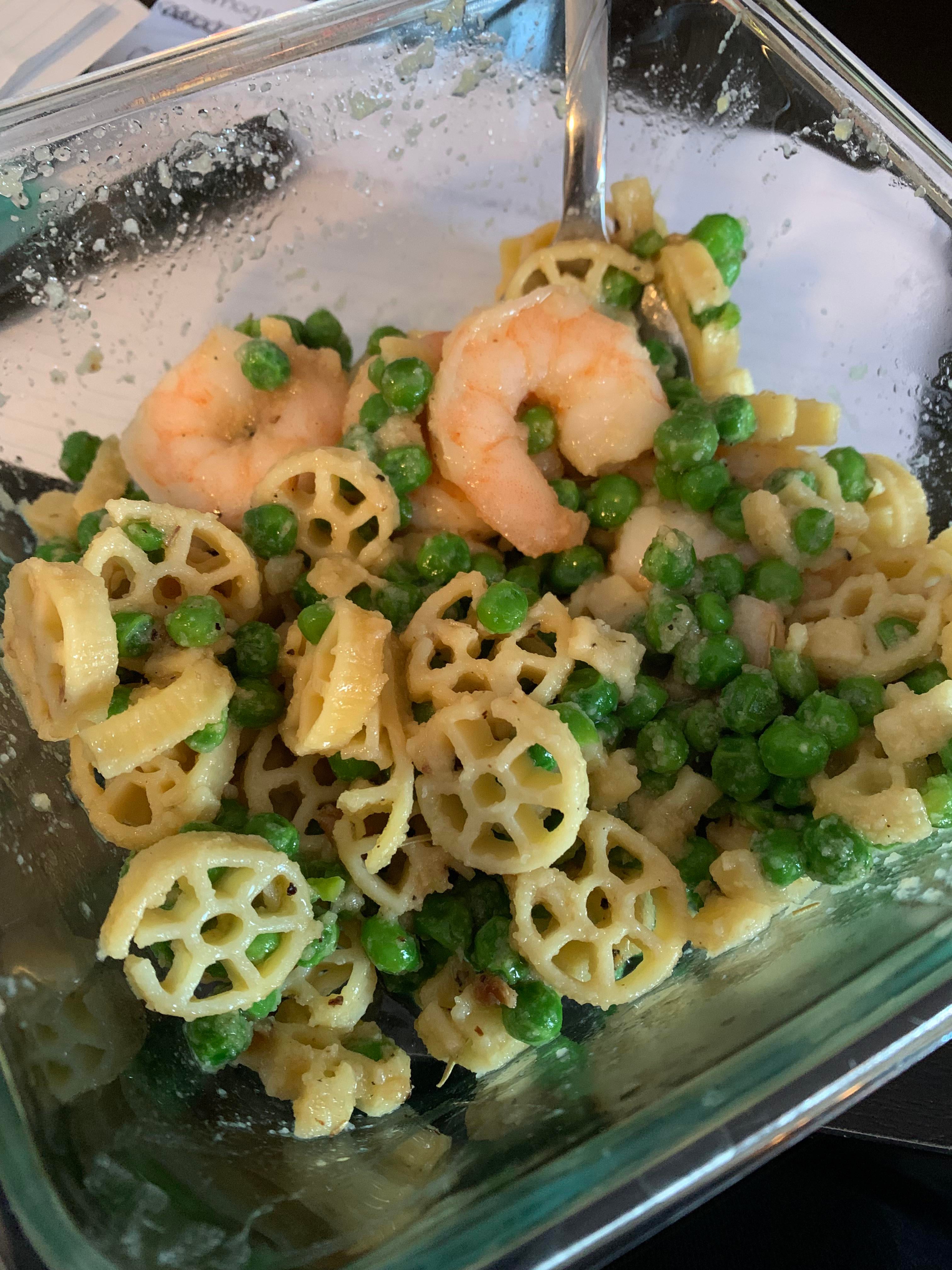 Garlic Shrimp Pasta- 460 calories, 31 grams of protein.