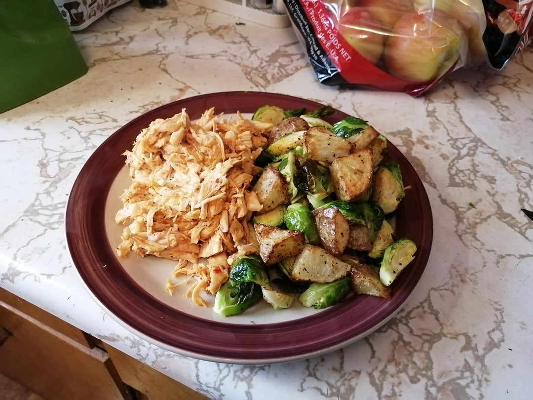 I sauteed the chicken in some franks red hot, garlic, and a laughing cow cheese wedge. Veg and potato were done in my air fryer. It was very filling and tasty! Next time I would probably use another laughing vow wedge for added creaminess.