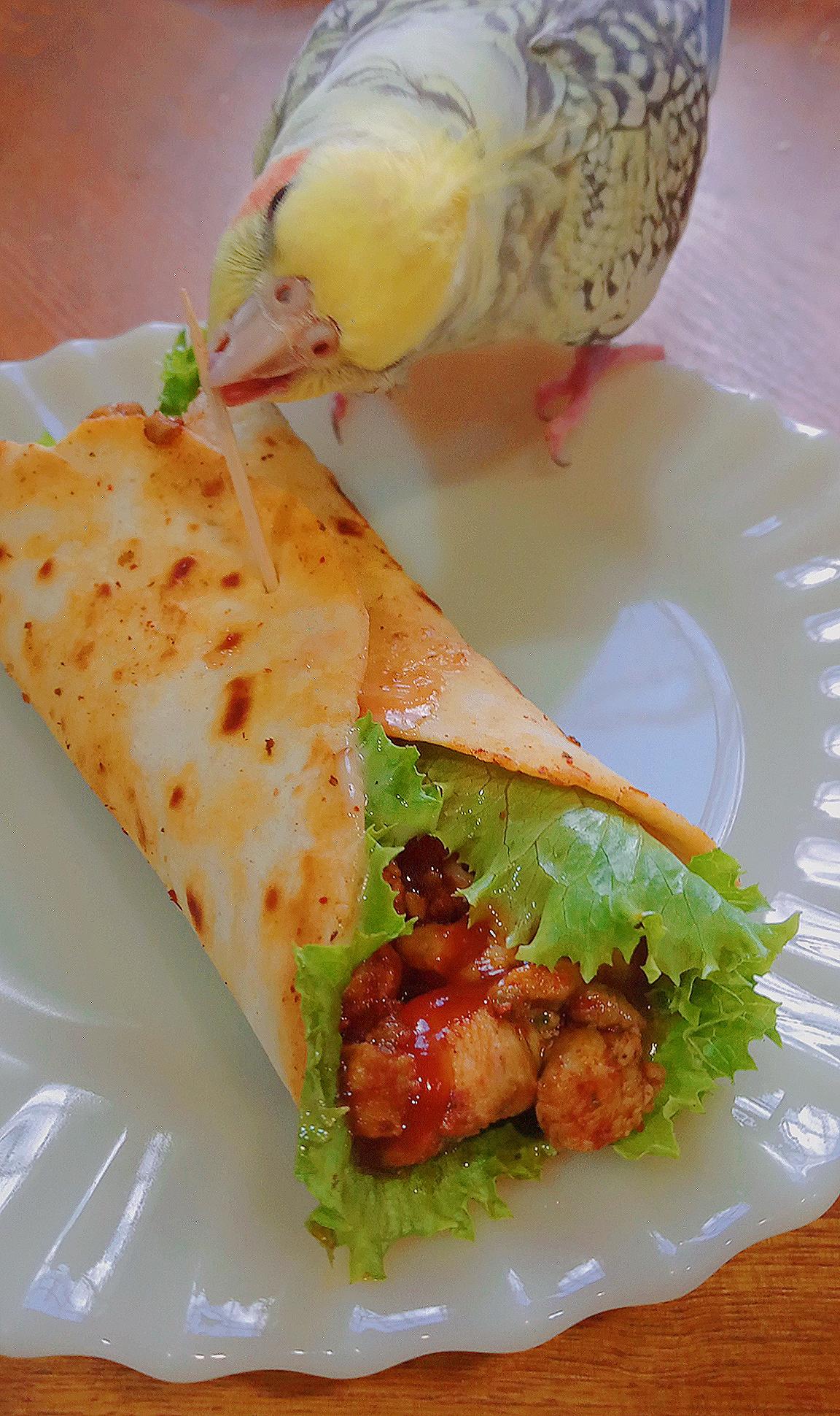230 calorie sriracha chicken wrap πby maipaksana 5 Comments spookyskelley 3 years ago The chicken is supposed to go inside the tortilla I think FruitSnacks22 3 years ago Bird π Sydmk 3 years ago heβs stealing!!! teded46 3 years ago At first glance it looks like a before and after photoβ¦ barabubblegumboi 3 years ago Is that hygienic?Write A CommentYou must be logged in to post a comment.